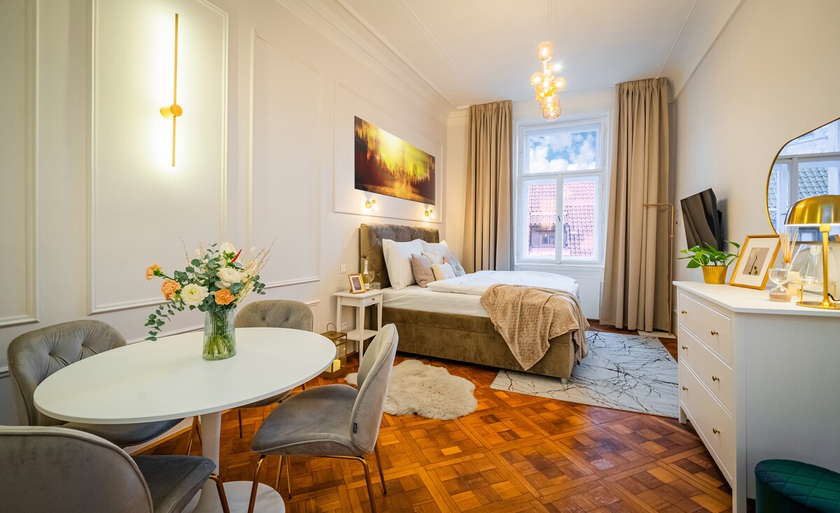 ¡Nuevo! La esencia de la antigua Praga en un apartamento del siglo XIV cerca de monasterio de Santa Águeda, a solo 5 minutos a pie de la plaza de la Ciudad Vieja. Es como un laberinto, con vistas y rincones inesperados, con acceso directo a un tranquilo patio. Muy cómodo, con suelo radiante en la ducha y con una habitación especial con bañera para relajarse.