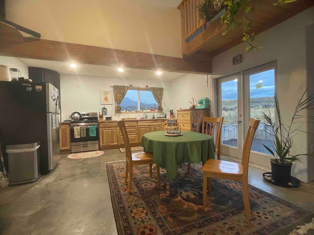 Retreat, recharge, and be inspired at Darla's Loft. 550+ sq. ft. indoor space, and gorgeous views of Needle Rock, West Elk Mts., and Grand Mesa from the 10x10 deck in back. 20 minutes from North Rim of Black Canyon National Park; 3 minutes from Crawford Lake State Park. King bed; futon for extra guest or children. Explore the beauty of Crawford Country during the day, relax on the deck and watch the sunset (and on a good day, the alpenglow on the mountains) then the stars (Dark Skies region).