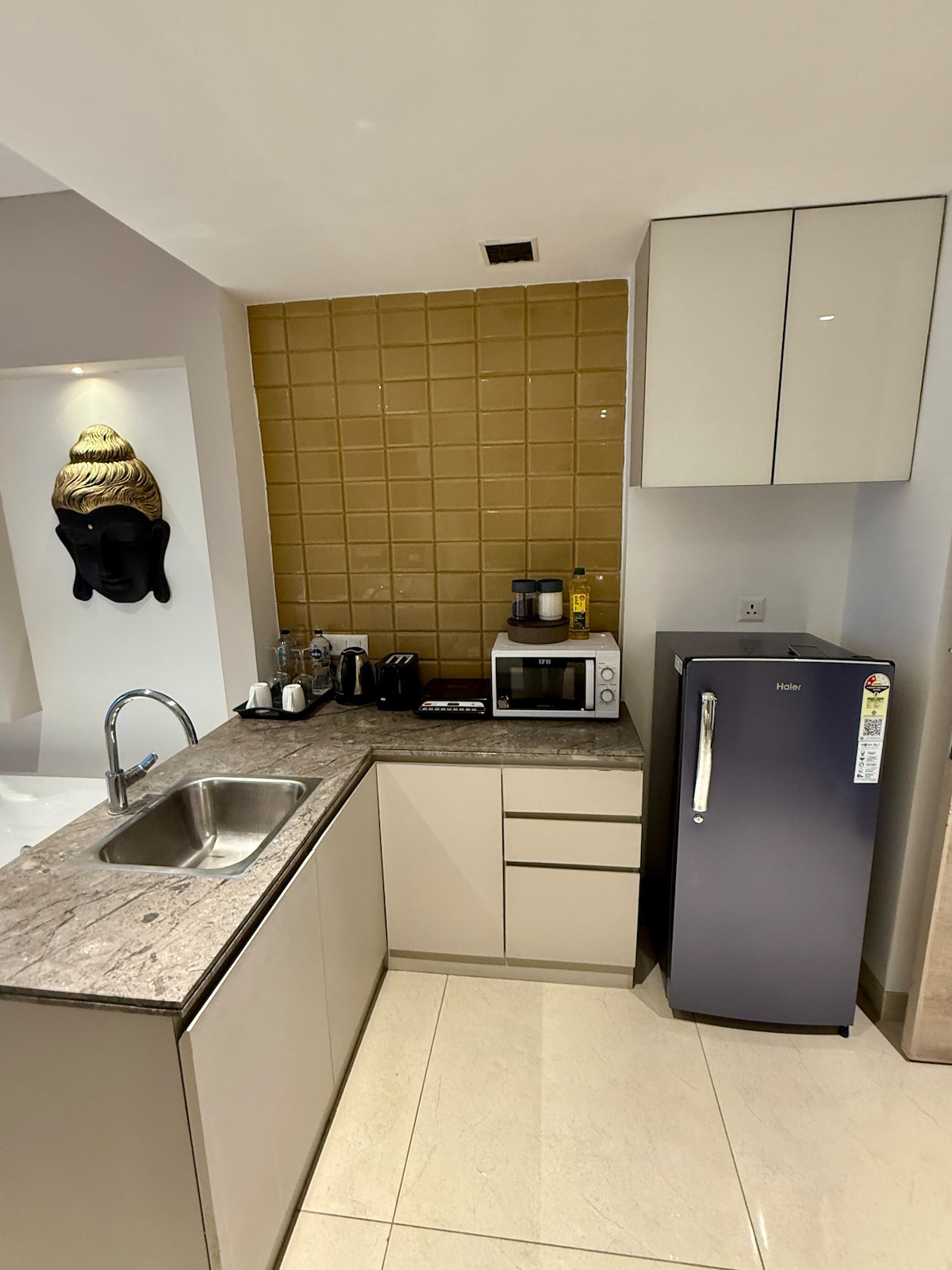 Tanto si viajas por vacaciones como por trabajo, tendrás un apartamento privado para ti y tu familia, equipado con instalaciones modernas como wifi, TV inteligente de 55 pulgadas, lavadora, microondas y mucho más, en un barrio tranquilo de la zona residencial, para que puedas llevar a la familia a este fantástico alojamiento que tiene un montón de espacio para divertirse. Es un lugar genial. Es agradable e higiénico, está a 10 minutos del fuerte Neemrana y a 5 minutos de la autopista nacional NH8. Muchas opciones gastronómicas.
