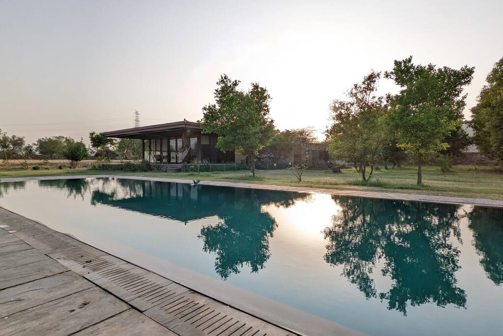 Escápate de la ciudad y relájate en Casa Serene, una granja privada de lujo a solo 1,5 horas de Delhi. Con una piscina brillante, un elegante mirador de estilo inglés y un césped abierto de 8000 pies cuadrados, es perfecto para fines de semana relajantes, reuniones al atardecer y momentos especiales. Con 3 acogedoras habitaciones, juegos al aire libre y vistas tranquilas al campo, Casa Serene es ideal para escapadas familiares, retiros privados en la piscina con amigos, escapadas románticas o celebraciones íntimas bajo el cielo abierto.