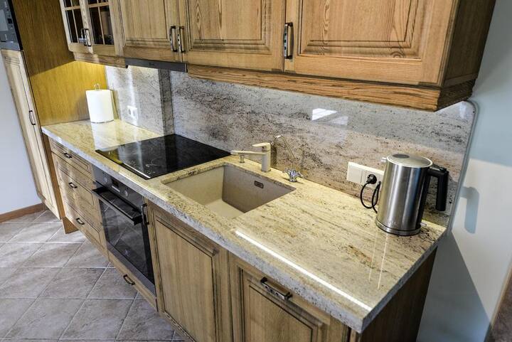 Newly decorated cozy apartment with two separate bedrooms and kitchen in between. The kitchen has all the necessary tools to fully serve your needs, from enjoying a cup of tea or coffee to preparing dinner for 4 people. You can enjoy sitting by the fireplace while you play chess or just lie down to relax and enjoy the view. The bathroom has hair dryer, towels, shower cabin and a heater to dry your swimming suits and towels. There is a balcony where you can enjoy the view with a cup of tea.