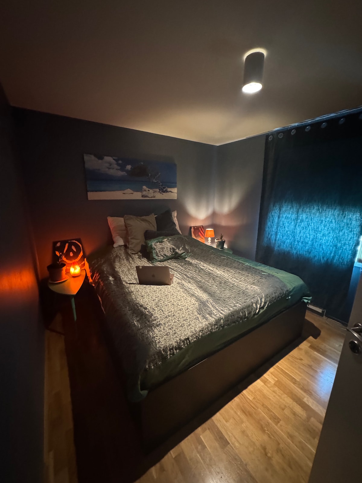 Cabaña sencilla adecuada para familias. Dos camas están en la sala de estar, un dormitorio con una cama doble y una pequeña guardería sin puerta. La cabaña es apta para niños, pero hay dos pequeños pasos\ umbrales dentro de la cabaña, así que ten en cuenta. Armarios con juguetes y libros para los más pequeños. Se proporcionan sábanas y toallas según sea necesario La cabaña vecina se encuentra en el mismo atún y también se puede alquilar si son dos familias.