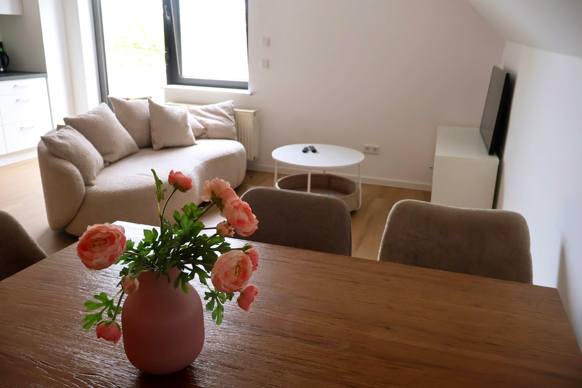 🌳 Bajo el nogal – Elegante apartamento de 95 m² con vistas al jardín. Un lugar para relajarse y disfrutar para toda la familia en la tranquila ciudad molinera de Pulheim-Stommeln. Los viajeros de negocios y las familias son bienvenidos aquí. Cuna para bebés, cambiador, juguetes y cochecito están disponibles bajo solicitud. Trabajamos sin descanso para optimizar nuestro alojamiento y el equipo del departamento. El exterior de la casa siempre se está modernizando.
