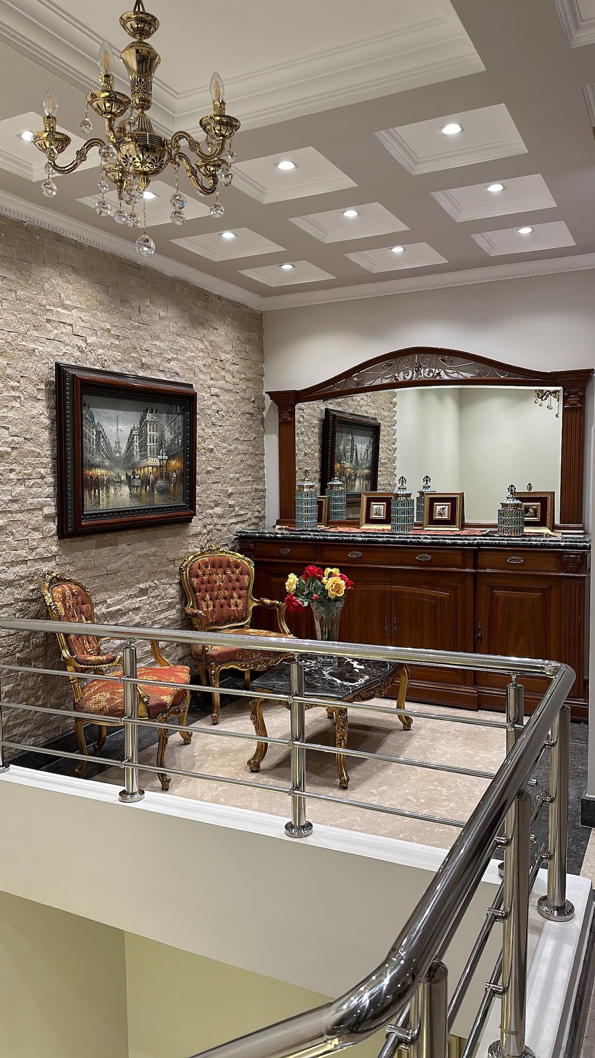 Mansión de lujo con impresionante piscina e impresionante paisaje circundante, ubicada en el corazón del quinto asentamiento y comedor y zona de estar elegantemente amueblada con una cocina completa. La mansión está equipada con aire acondicionado oculto, pantallas de televisión planas, wifi gratuito y estacionamiento privado gratuito. Zona bastante atractiva rodeada de una variedad de restaurantes, cafeterías, supermercados y centros comerciales. El aeropuerto de El Cairo está a unos 20 minutos de distancia. Se ofrece un desayuno continental de forma gratuita.