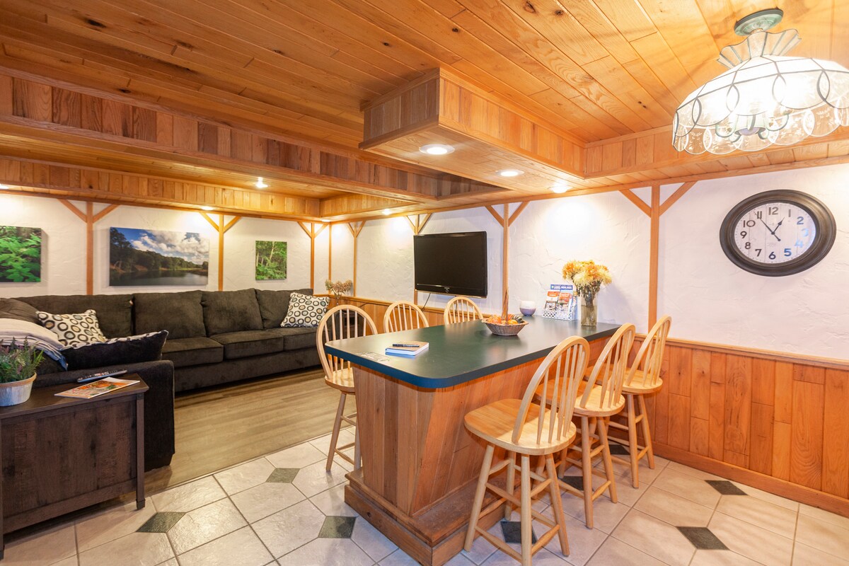 Acomódate en este acogedor apartamento de un dormitorio en The Villages en Seven Springs Mountain Resort. Este refugio cuenta con fácil acceso a las pistas de esquí a través del sendero de las aldeas detrás del edificio del condominio (si el clima lo permite). Lo que hace que este condominio sea especial es la entrada privada, el gran espacio habitable, un dormitorio con cama tamaño king, una cocina completa y un balcón. Como huésped, tienes acceso al servicio de traslado gratuito o visita la casa club con piscina, jacuzzi, baloncesto y tenis en los meses de verano.