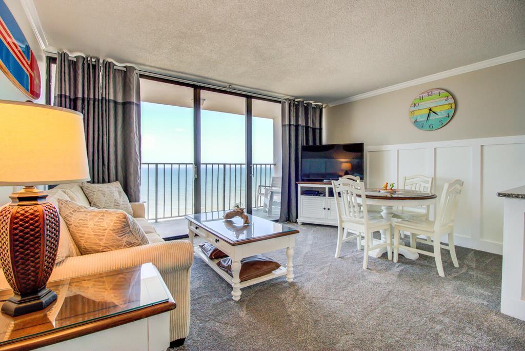 Condominio frente al mar ubicado en el tercer piso, y tiene una vista al mar. Las imágenes mostrarán los toques personales del propietario para hacer una escapada cómoda y relajante a la playa. Hay una cocina completa y todos los utensilios de cocina y platos necesarios. El condominio tiene capacidad para seis personas. Hay literas individuales y un sofá cama tamaño queen en la sala de estar. El dormitorio tiene una cama tamaño king y TV. El condominio tiene wifi excelente y privado y el servicio de cable tiene un paquete completo de opciones de entretenimiento.