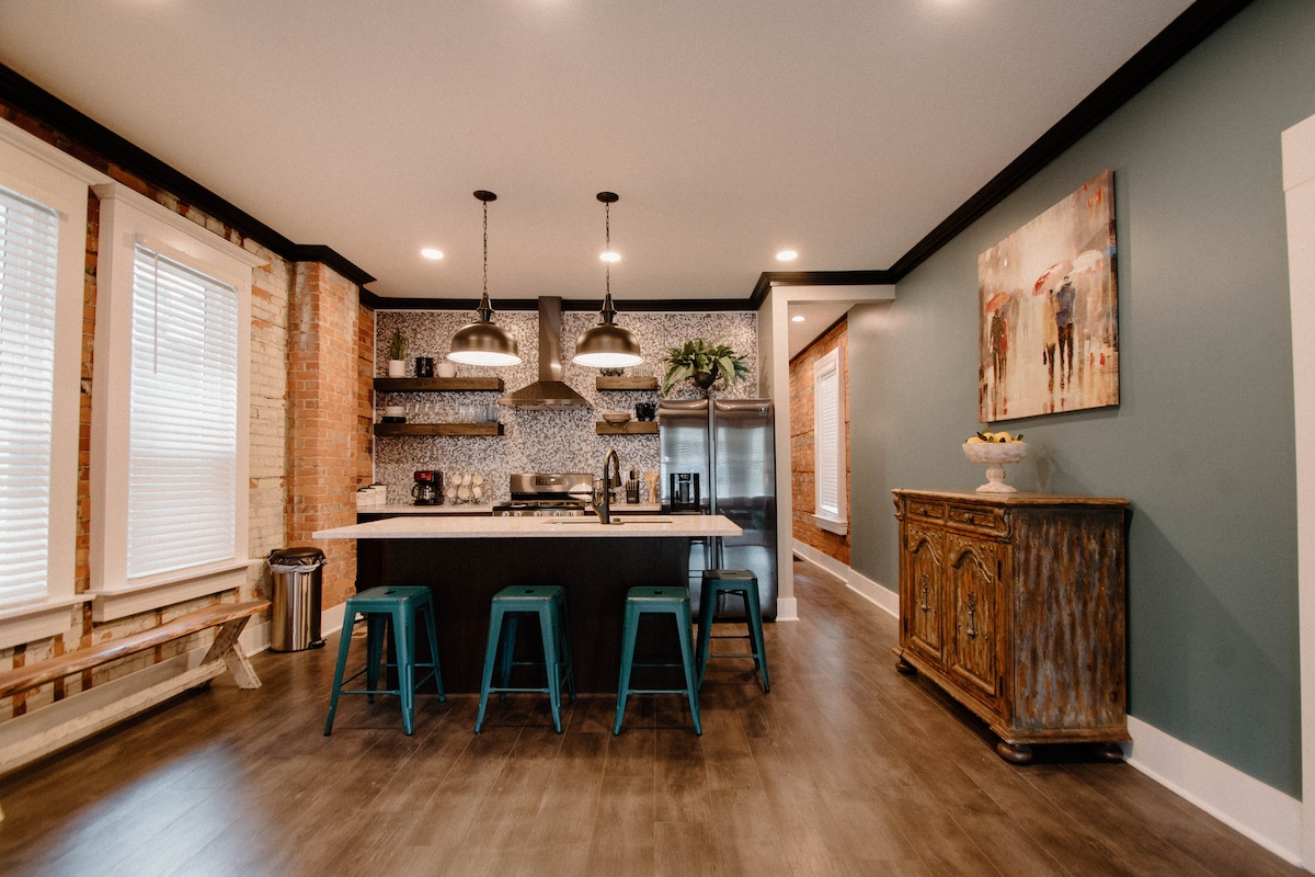 El loft Bird's Nest se encuentra en el histórico edificio Canton Laundry. Construido en 1890, comenzó su historia de 70 años como lavandería en 1935. TOTALMENTE RENOVADO con todas las comodidades de un hogar... ¡y algunas más! Incluye un dormitorio principal privado, un espacio loft para dormir separado, un espacio de trabajo dedicado, áreas privadas al aire libre y APARCAMIENTO INCLUIDO. ¡Ubicado a pocas manzanas de senderos para caminar y andar en bicicleta, alquiler de kayaks, Embassy Theatre, Botanical Conservatory, cafeterías, bares y muchos restaurantes increíbles!