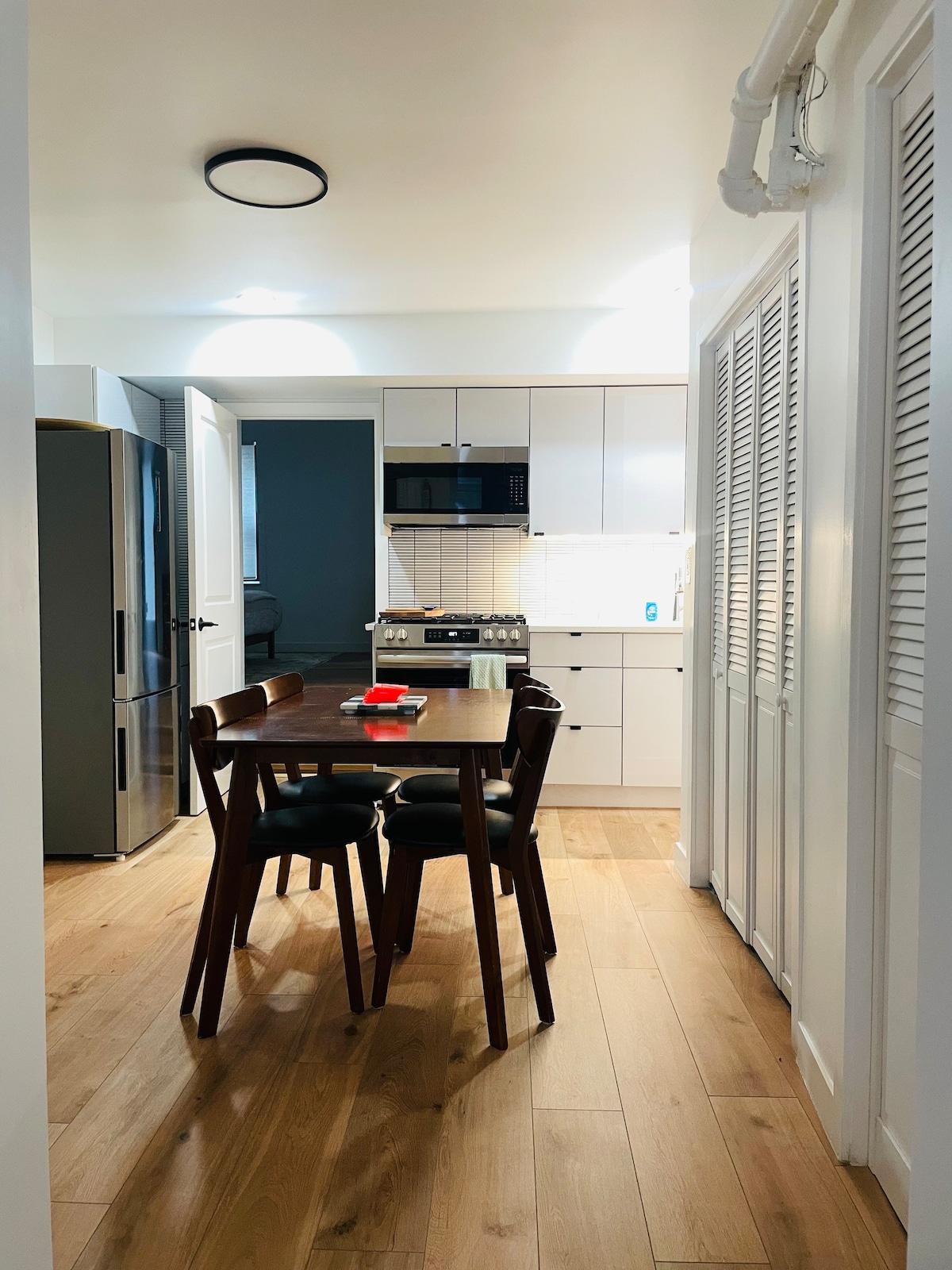 Este encantador apartamento de ladrillo de 1901, cuidadosamente restaurado, está perfectamente ubicado en una calle arbolada en el centro de Hoboken. Con entrada privada sin llave, diseño espacioso con toques de diseño, cocina totalmente equipada, patio privado y comodidades modernas como wifi, Alexa y TV inteligente. Si buscas una escapada corta y aprecias el estilo de primer nivel, este es el lugar perfecto para relajarte y refrescarte. Para estancias prolongadas, acomódate y disfruta de tu nuevo hogar lejos de casa.