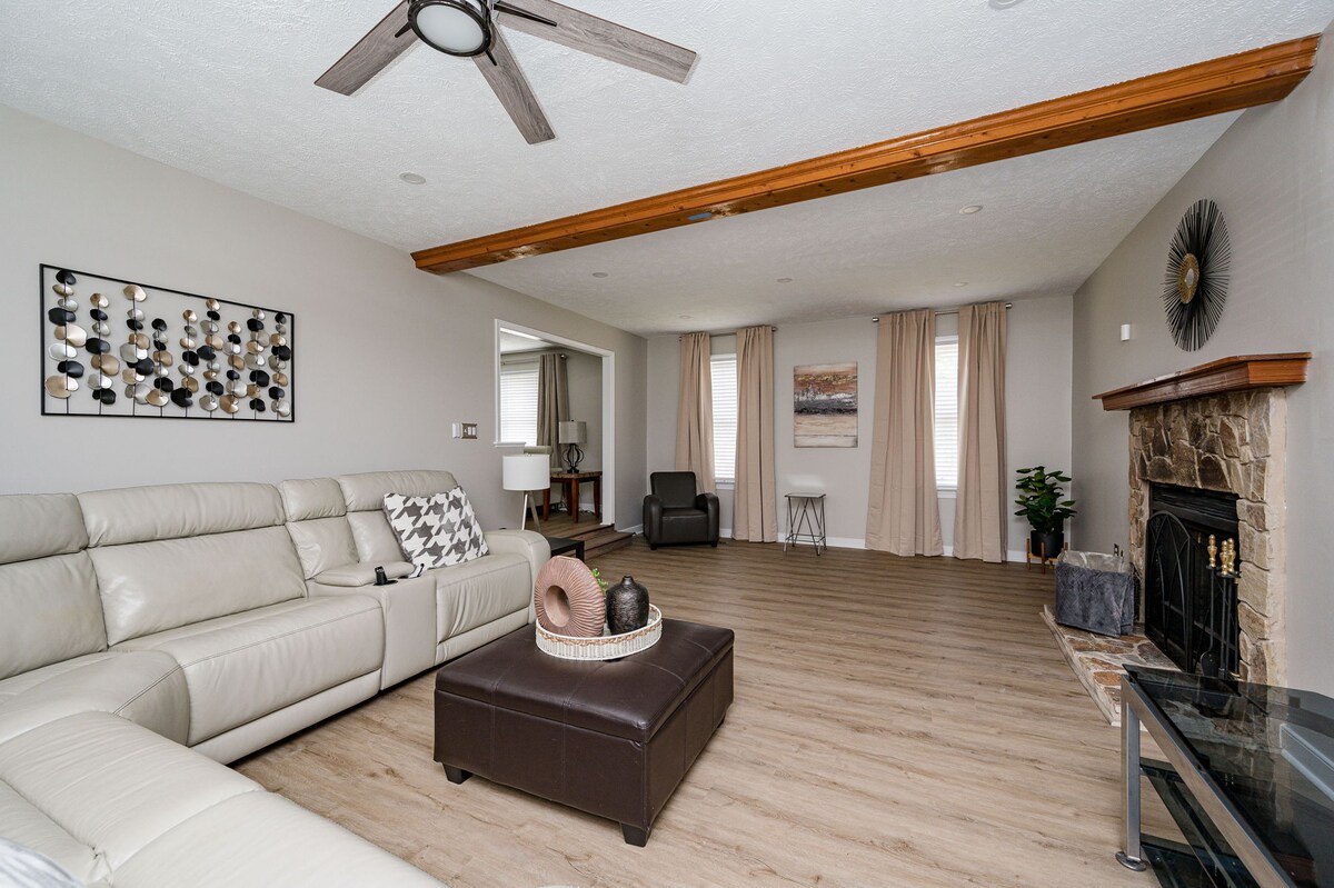 ✨ Te damos la bienvenida a The Vibe: ¡10 acres privados, encanto rural y comodidad moderna! Casa de ladrillo de 1600 pies cuadrados a 15 minutos de Colonial Downs y a 5 minutos de supermercados y restaurantes. 🎬 TV de 85 pulgadas + sonido envolvente Televisores Roku de📺 55 pulgadas en cada habitación 🌐 Wifi potente y escritorio para trabajo remoto Iluminación 💡 LED regulable + Cabina fotográfica de pared 🔥 Chimenea • Asientos en la terraza • Parrilla • Fogata 🚗 Mucho estacionamiento + cargador de vehículos eléctricos 🛏 Capacidad para 7 personas: King • Queen • Full+Twin • Silla extraíble The Vibe admite mascotas🐶