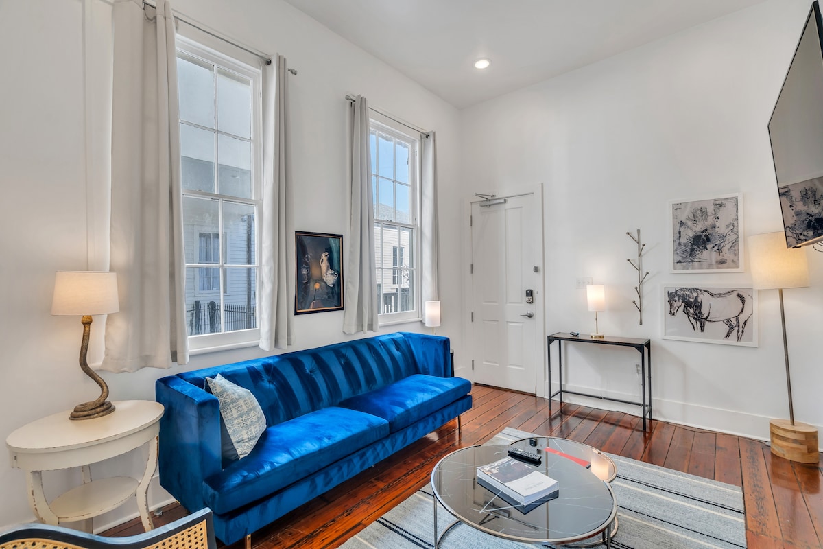 ⭑ Bienvenido a The Armstrong ⭑ Esta elegante suite de dos dormitorios y dos baños cuenta con ladrillos a la vista, vigas de madera originales y una amplia área privada al aire libre, que combina el encanto de Nueva Orleans con la comodidad de lujo. Perfecto para parejas, amigos o grupos pequeños, The Armstrong incluye una cocina totalmente equipada, comedor interior para seis personas y una luminosa sala de estar en el corazón del Warehouse District. A solo unos pasos del Barrio Francés, es tu base perfecta para explorar la ciudad.