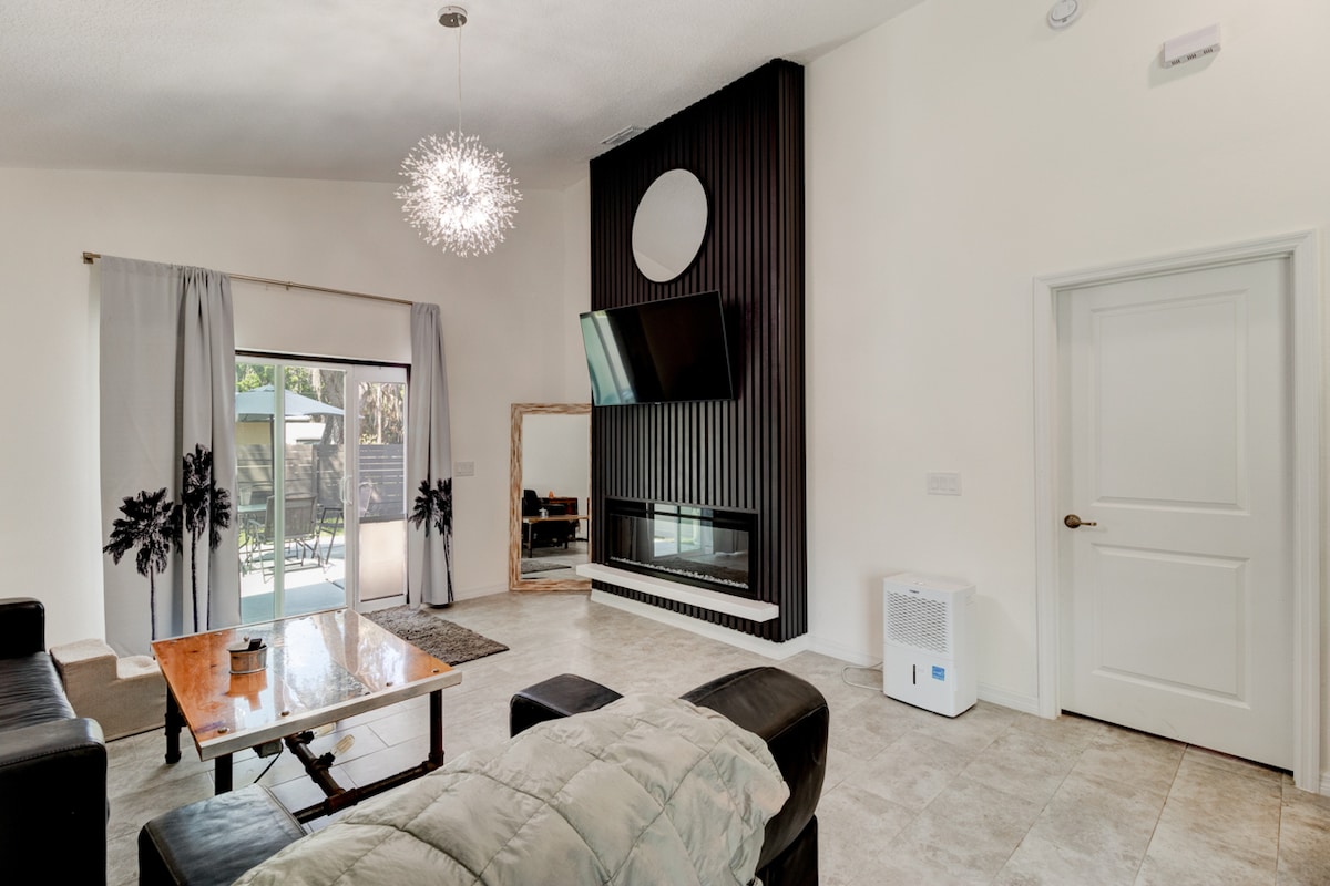 ¡Te damos la bienvenida a Palm Paradise, tu escapada junto a la playa! Escapa al corazón de New Smyrna Beach y relájate cómodamente en nuestra casa de 3 dormitorios y 2 baños bellamente decorada a solo seis cuadras de Flagler Avenue y justo enfrente de un cómodo paseo por la playa. ¡Esta ubicación no puede ser mejor! Disfruta de tu propia piscina privada climatizada, una chimenea al aire libre y una parrilla de gas. La casa también cuenta con una cocina totalmente equipada, lavandería en casa y todos los elementos básicos para una estancia sin preocupaciones.