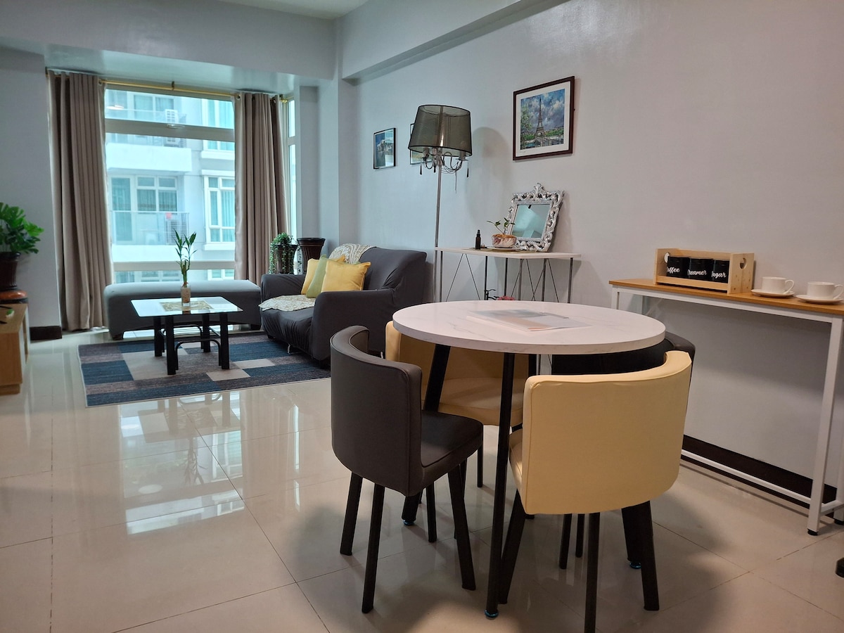 [Haz clic en Mostrar más para obtener más información]. Two Palm Tree Villas se encuentra al otro lado de la Terminal 3 de Naia. Unidad de estudio de condominio totalmente amueblada (31 metros cuadrados), lugar seguro y céntrico: Televisión inteligente ● de 55 pulgadas (Netflix y YouTube Premium) Configuración ● de doble proveedor de Internet ● Ten espacio para empacar el equipaje ● A 4 minutos a pie de la iglesia de Santa Teresa A ● 5 minutos a pie del puente Runway Manila-Terminal 3 ● A 8 minutos a pie del supermercado Metro ● A 8 minutos a pie de Resorts World/Newport Mall A ● 10-15 minutos en coche de la terminal 1, 2 y 4
