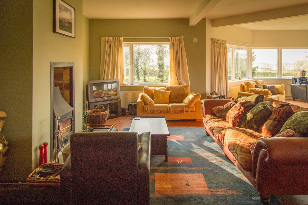 Un oasis de calma situado en la campiña ondulante esta casa está en el centro de Irlanda perfecto para hacer turismo ,ciclismo ,golf ,caminar o simplemente relajarse. Apelaría a las familias para las vacaciones de verano o a los grupos pequeños para escapadas prolongadas de fin de semana (clubes de libros, etc.). Atiende solo a los turistas. Ofrece un alojamiento cómodo a un alto nivel con mucho carácter que incluye ventanas de hoja cerrada, vigas expuestas,lujoso baño de garras y 2 estufas de leña y un invernadero para observar aves.