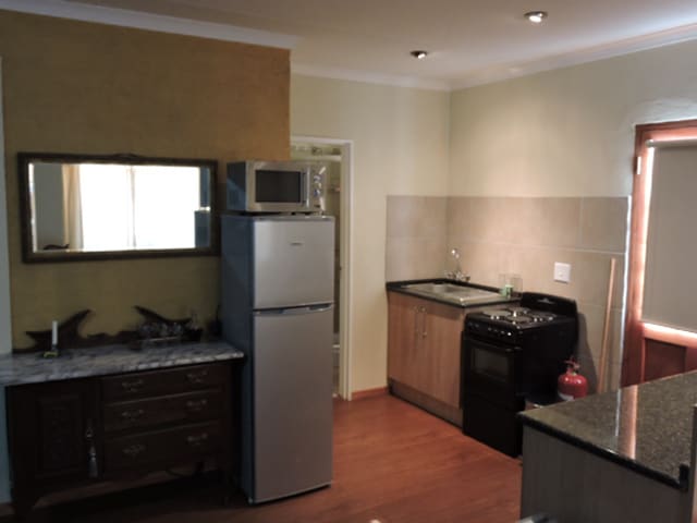 Apartamento para solteros en una granja situada en el centro, cerca de Parys, Sasolburg y Vanderbijlpark (a 20 kilómetros de cualquiera de estos destinos). A 6 kilómetros de Pont de Val. Tranquilo y silencioso. Visite el Kaalvoet Kafee en las instalaciones para tomar algo frío. Visita nuestra librería y/o tienda de decoración en las instalaciones.