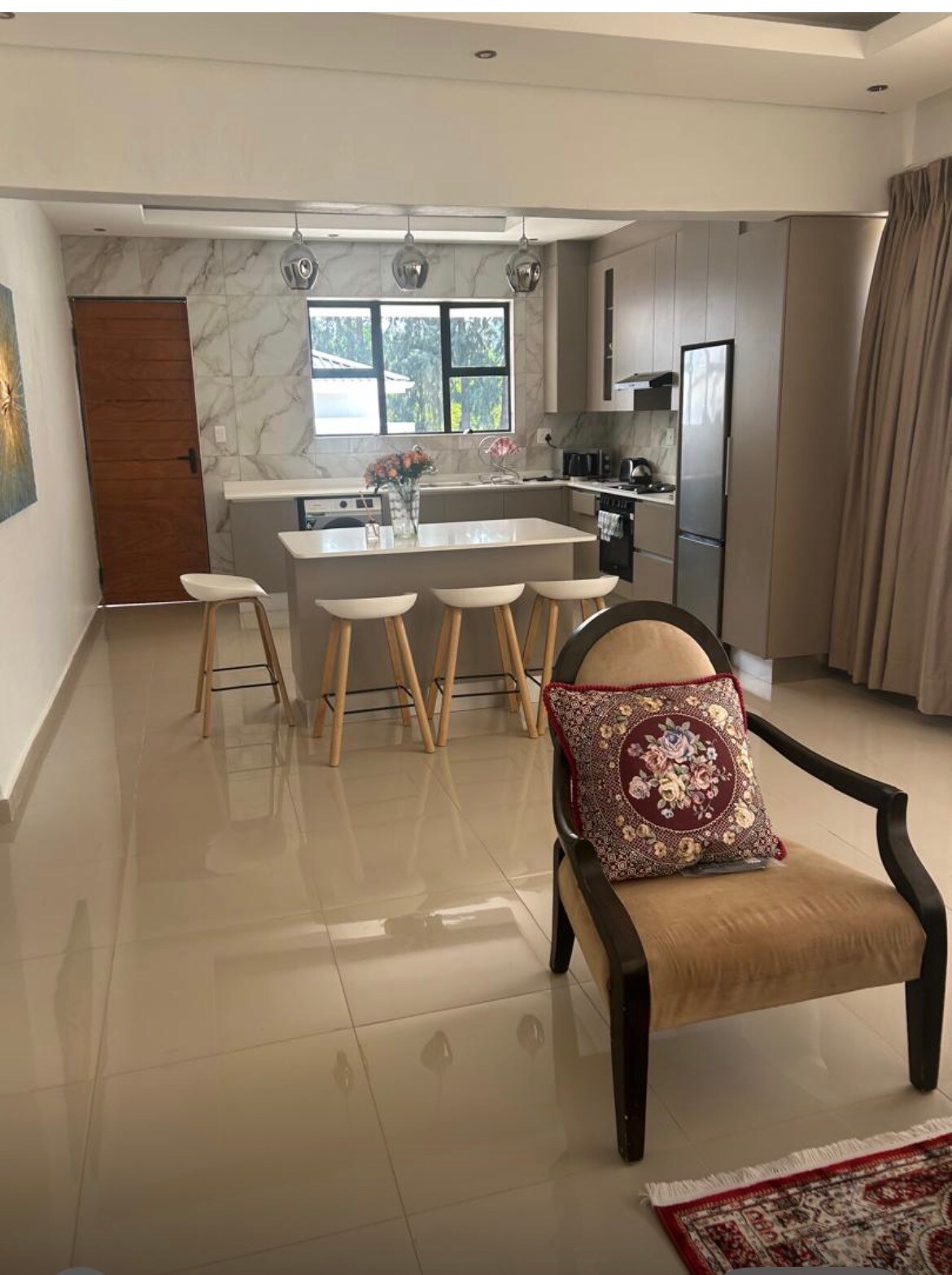 Modern one-bedroom apartment in a quiet, secure neighborhood just 4 km from the CBD. Ideal for business or leisure stays. Enjoy high-speed Wi-Fi, a Smart TV, and a comfortable workstation for remote work. The fully equipped kitchen includes a stove, oven, microwave, fridge, and cooking utensils. The bathroom features both a bathtub and shower. The apartment is serviced daily to ensure a clean and comfortable stay throughout your visit.
