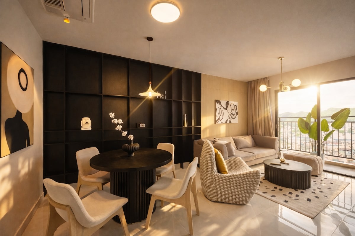 Ideal para estadías largas, trabajo remoto y familias. Este luminoso y moderno apartamento de 2 dormitorios ofrece una cómoda experiencia "como en casa" en el corazón de Nha Trang. • Amplios 2 dormitorios con luz natural. • Cocina y comedor totalmente equipados. • Wifi rápido y espacio para trabajar • Balcón privado con vista al mar. • Piscina en la azotea y gimnasio. • A 2 minutos a pie de la playa, el mercado nocturno y los restaurantes.