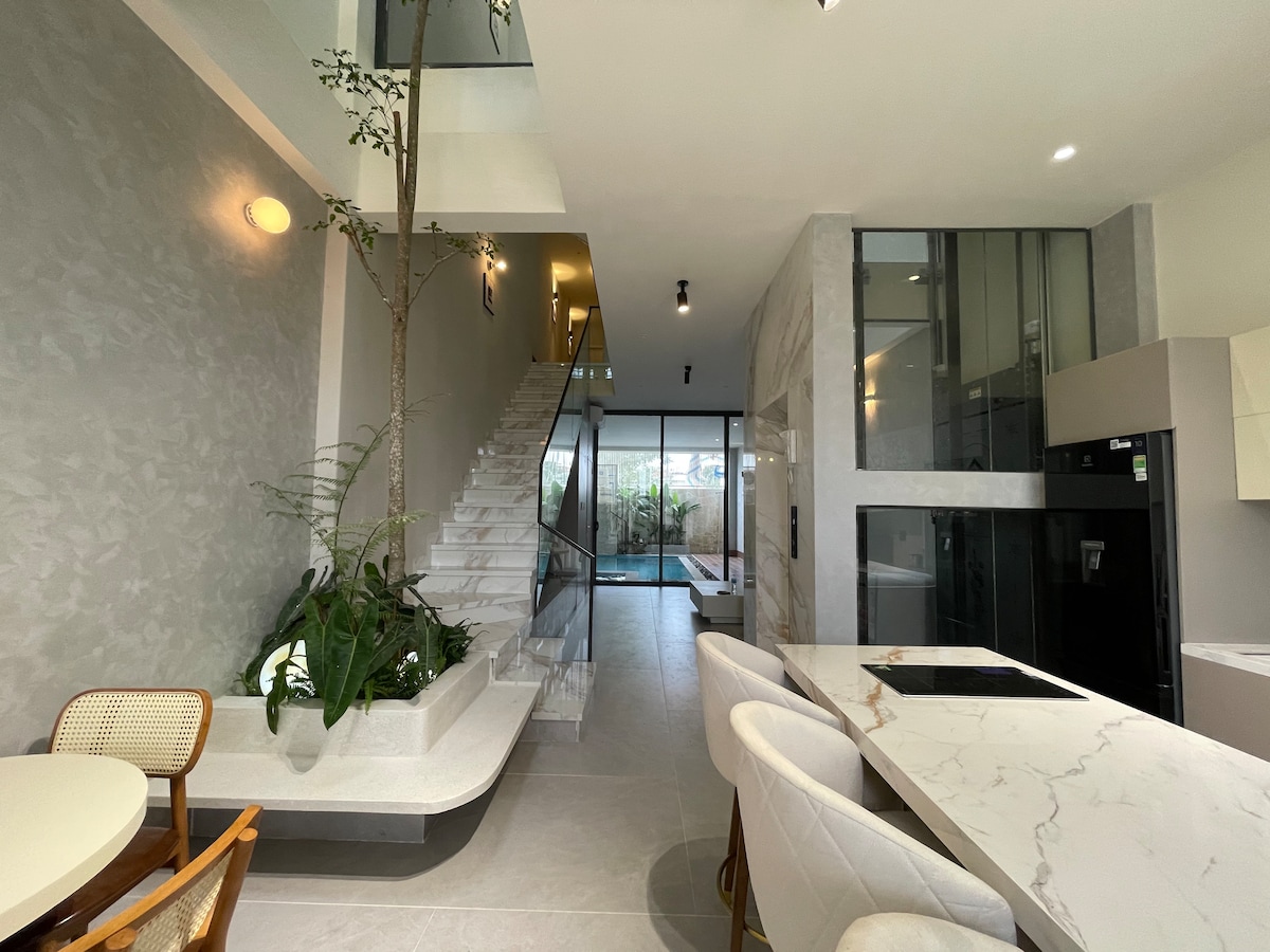 • Brand-new modern city villa with 5 bedrooms and 5 private bathrooms • Private indoor swimming pool with hot tub & massage feature • 3-story house with elevator access up to the rooftop • Spacious rooftop terrace and front yard, perfect for BBQ and gatherings • Located in the heart of Nha Trang, near Lotte Mart • Only 5 minutes by Grab taxi to the central beach • Ideal for families and groups seeking privacy, comfort, and convenience
