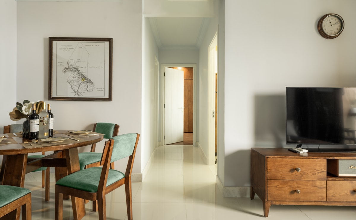 Te damos la bienvenida a nuestro apartamento urbano en el sereno barrio de Thu Thiem Villa. Este es un departamento de 1 dormitorio donde puedes disfrutar de una vista única de búfalos y campos de cultivo. Ubicado en D2, estamos a solo 25 minutos en coche del bullicio de la ciudad. Para agregar a tu aventura, tenemos una moto disponible para alquilar, ¡perfecta para explorar la ciudad de una manera divertida! Nuestro apartamento cuenta con un gimnasio, piscina, supermercado cercano y encantadoras cafeterías. ¡Tengo muchas ganas de que lo experimentes!