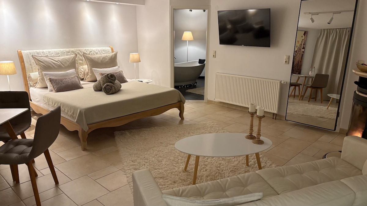 Stilvolle Suite mit Sauna, Kamin & Küche