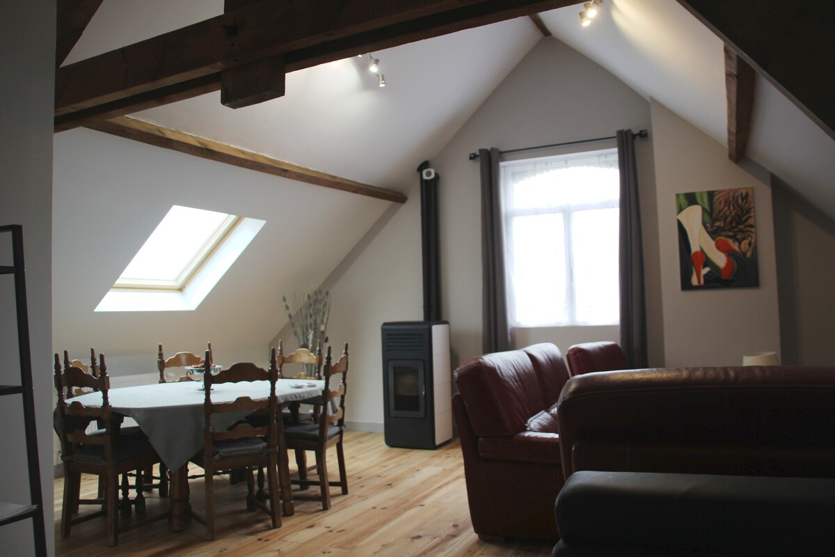 Esperamos darle la bienvenida pronto en nuestro nuevo apartamento de «La Maison Rouge» situado en el eje de la autopista y SNCF Lille/Dunkerque, estación de tren y salida de la autopista cerca del pueblo). - Apartamento independiente - Amplia terraza con vistas panorámicas al campo - Estufa de leña - Cocina totalmente equipada + lavadora secadora - Ropa de cama 180/200 cuidadosamente elegida para garantizar la máxima comodidad - Wifi de fibra ultrarrápida, Apple y Orange TV - Numerosas tiendas a poca distancia