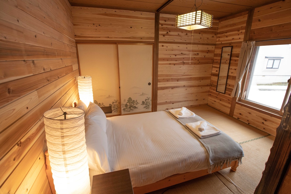 A 3 minutos a pie del centro de esquí Fujiwara | A 10 minutos en auto de Takaragawa Onsen ♨️ Ubicado entre árboles altos, Kokoro House es un chalet de montaña de madera de 3 pisos que ofrece una estadía cálida y conmovedora para un máximo de 14 huéspedes, con encanto retro y rústico y amplios salones para relajarse y reunirse. Ideal para familias y grupos de amigos. Sumérgete en las aguas termales naturales, rodeadas de vistas tranquilas al bosque. Disfruta de mañanas lentas, aire fresco de montaña y momentos tranquilos en la naturaleza.