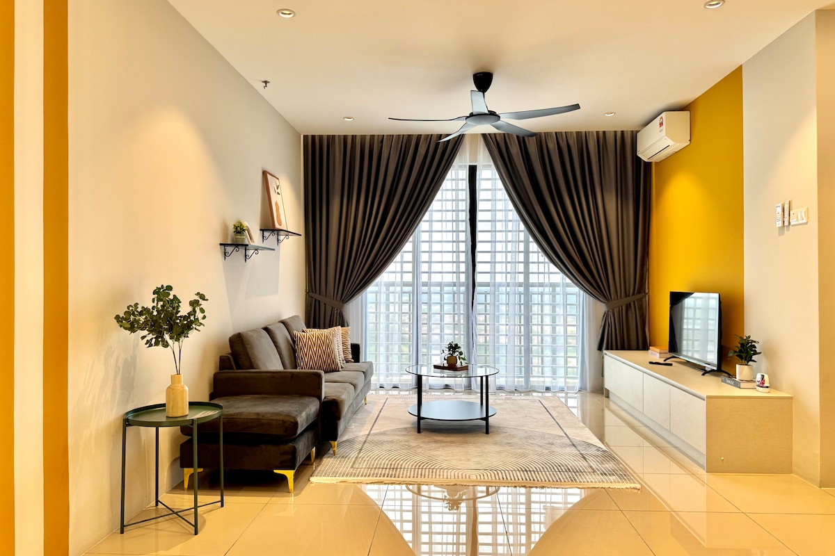 Explora nuestro acogedor estudio, que puede alojar de 2 a 3 personas con una cama tamaño queen y un sofá cama. A solo 15 minutos en coche de KLIA T1/T2, el lugar está rodeado de muchos restaurantes, sucursales de comida rápida, tiendas de comestibles y lavanderías, todo a poca distancia a pie. Disfruta de todas las comodidades, incluido el parque infantil, la zona de barbacoa, el gimnasio y la piscina, con seguridad las 24 horas, 7 días a la semana. * No disponible para dejar el equipaje antes de las horas de llegada. Debido al diseño del edificio, es necesario subir 10 escalones para llegar al ascensor.