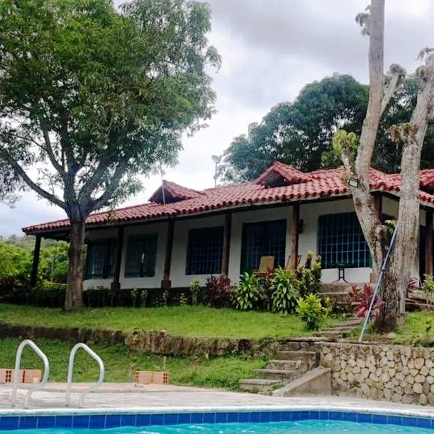 Hermosa casa con piscina privada en clima calido y rodeada de naturaleza. A tan solo 2.5 horas de Bogotá. Cuenta con capacidad para 15 personas. 3 habitaciones equipadas con juegos de cama, 3 baños, sala de estar con sofacama, cocina integral totalmente equipada, nevera, television por cable, parrilla para asados, La zona de la pisicina esta dotada de asoleadoras, silla mecedora, palmeras para sombra, y amplia piscina de 6 x 10 super calida y familiar. Parqueadero 5 autos Espacio camping