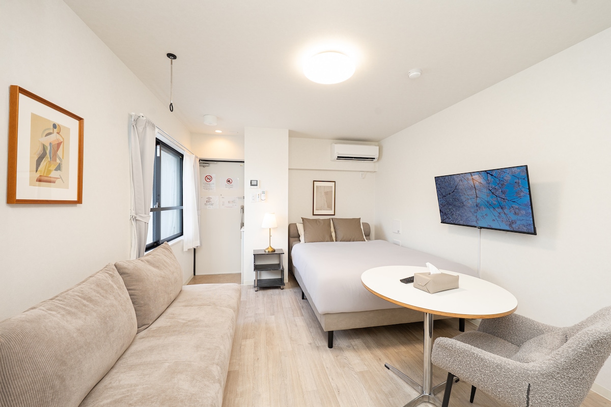 Estudio Japandi tranquilo y nuevo|Cerca de JR・metro|Lavadora y secadora|Ascensor|Almacenamiento de equipaje