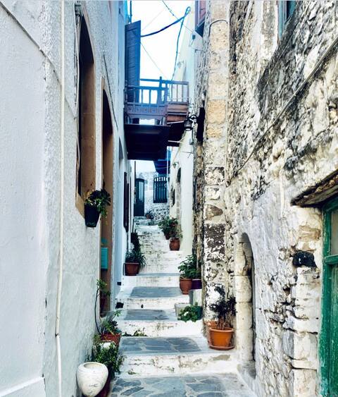 La casa tradicional de Nisyria tiene 3 plantas, situada en el corazón del centro. Está a 5 minutos del puerto y a 20 metros de la famosa iglesia y la plaza central. La distancia está a 1 minuto a pie de la mayoría de las cafeterías, restaurantes y mar con un supermercado frente a la casa y el ayuntamiento cerca. Tiene una terraza con una puesta de sol espectacular y una vista de todo el pueblo,con sillas y mesa para disfrutar de las vistas y 2 balcones con vistas al mar. Tiene 3 dormitorios y 2 baños (105 metros).