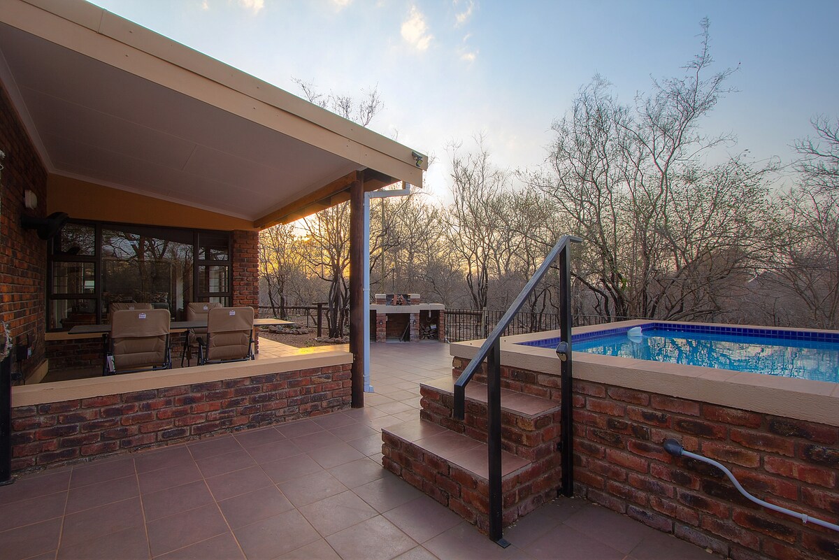 Ubicada en una de las 10 mejores fincas de vida silvestre de Sudáfrica, muy cerca del Parque Nacional Big 5 Kruger y del aeropuerto KMI. Esta casa de planta abierta, lujosa y espaciosa de 4 dormitorios, 4,5 baños en suite es ideal para familias. Disfruta de un cóctel junto a la piscina o relájate en el jacuzzi con las vistas más increíbles del monte y los animales salvajes. La casa consta de un boma, un braai interior y una acogedora chimenea para esos fríos días de invierno. Todas las habitaciones tienen magníficas vistas al campo.