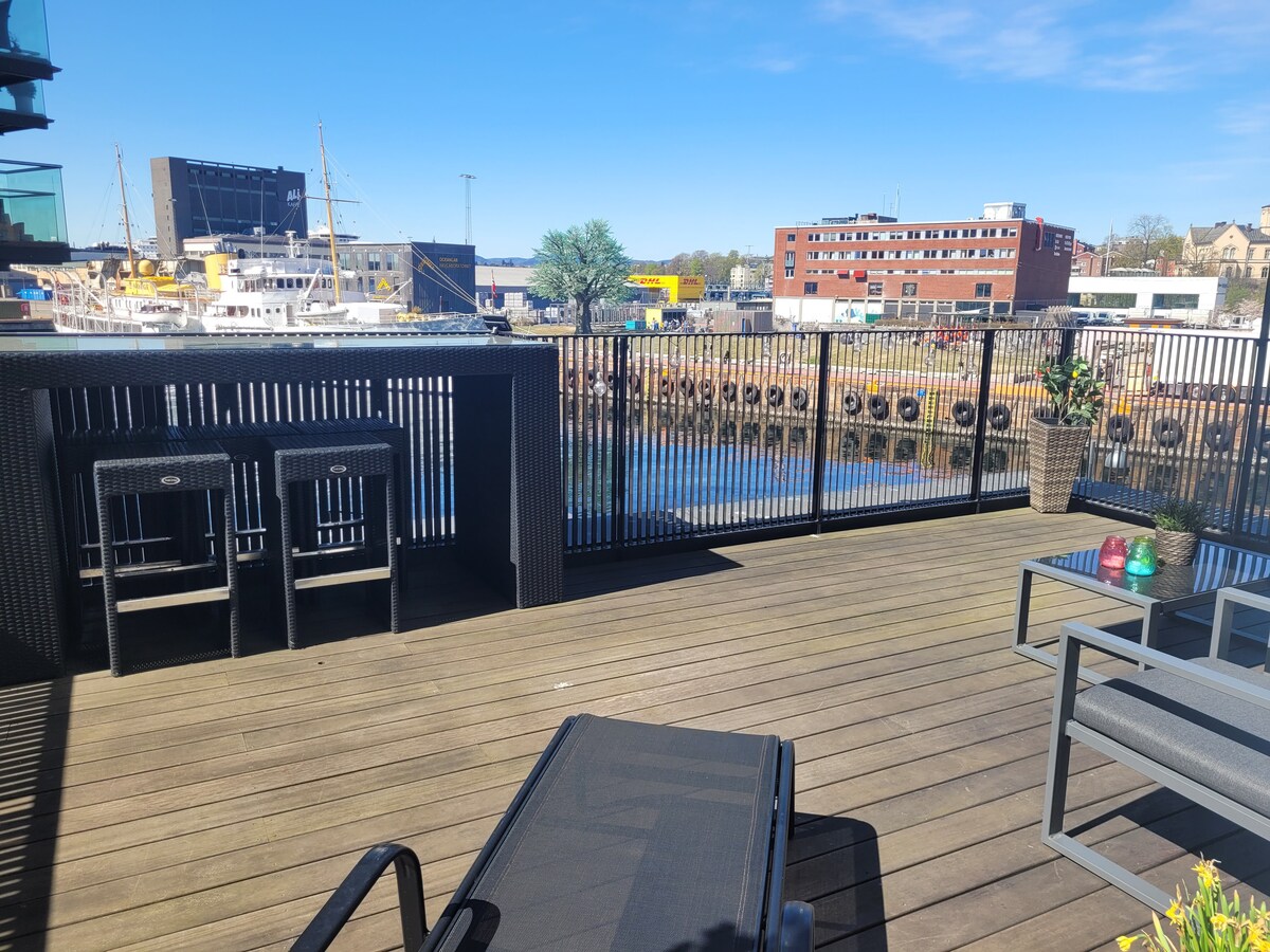 Tjuvholmen - med 30m² privat terrasse & sjøutsikt