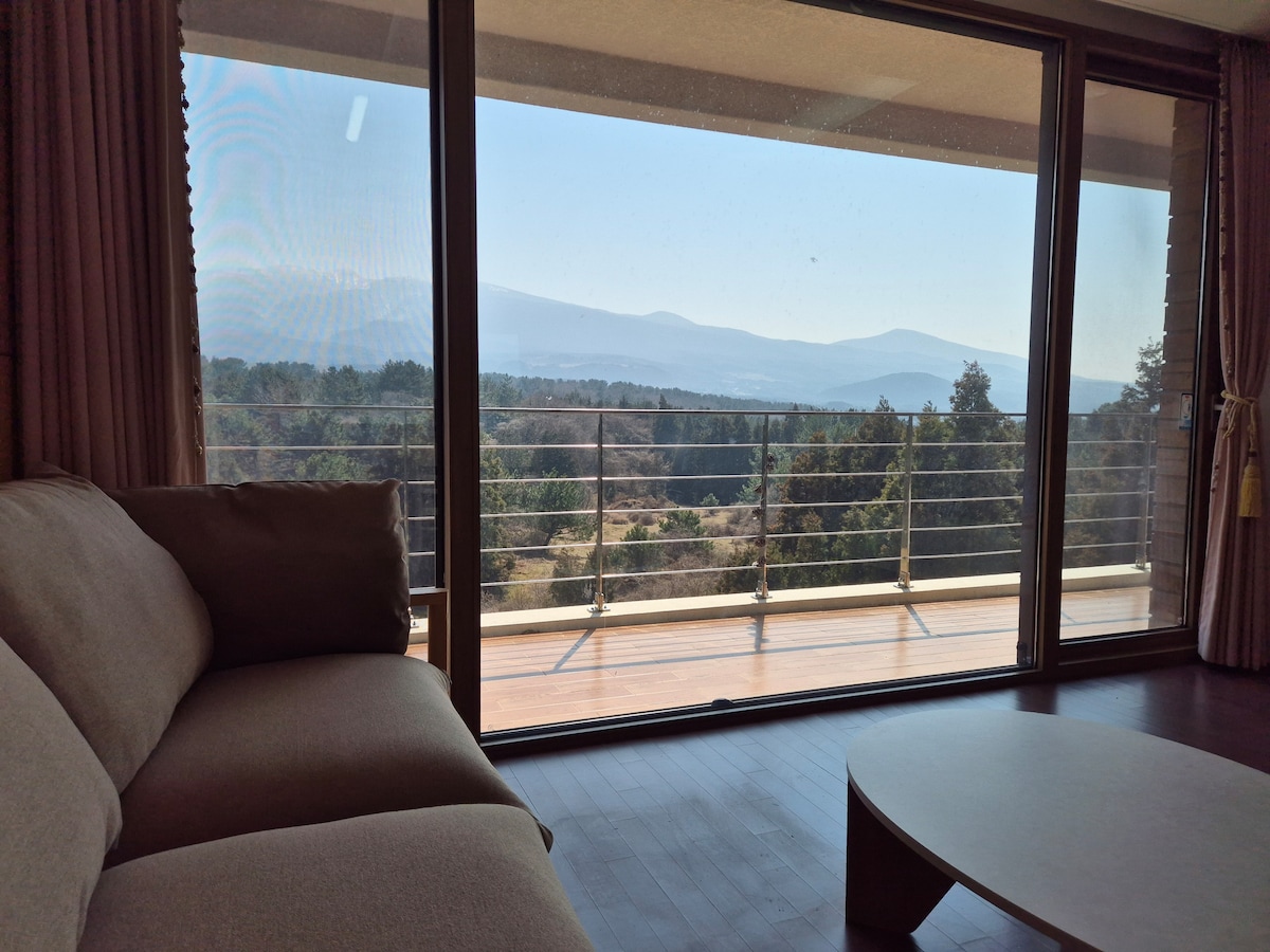 Lujoso complejo vacacional de lujo en la naturaleza con buenas vistas al monte Hallasan