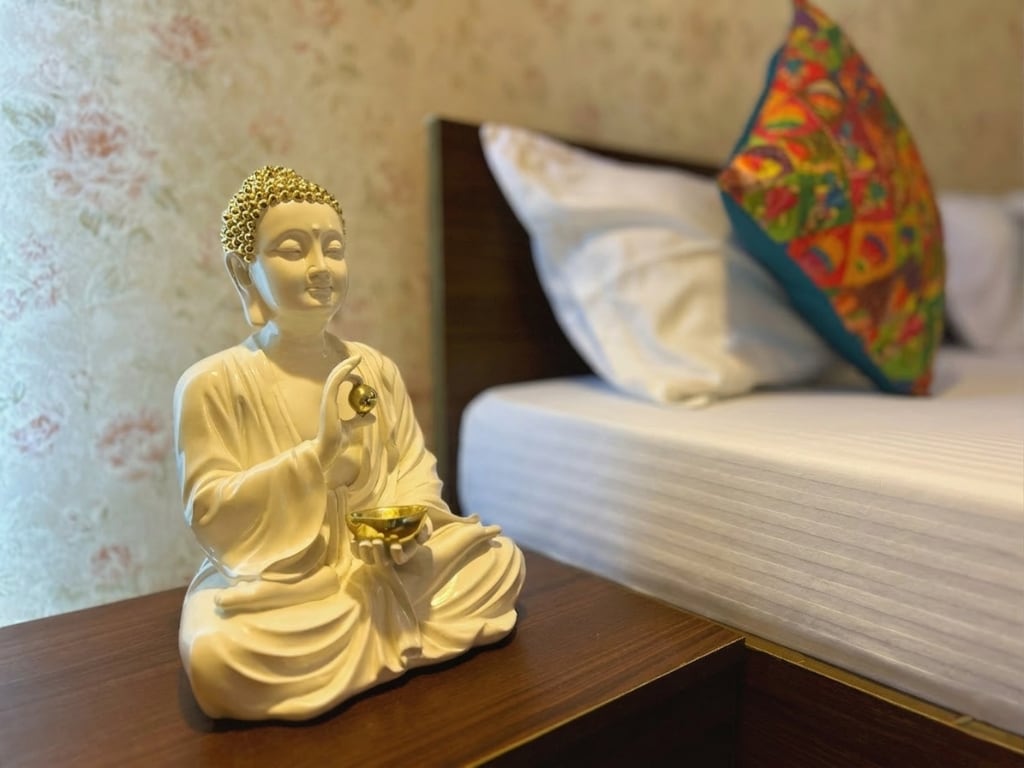 Relájate en este estudio tranquilo y lujoso con la calidez del hogar y el ambiente de un hotel de alta gama. Amueblado con una lujosa cama tamaño king y una decoración moderna. Servicios: Supermercado las 24 horas, los 7 días de Cocina pequeña moderna Wifi de alta velocidad y TV Estacionamiento seguro fuera de la torre, pero las 24 horas, los 7 días de la semana Los primeros 2 pisos tienen tiendas comerciales, que ofrecen: Servicios de lavandería Salón Cafetería Supermercado médico Fácil acceso al India Expo Mart, Circuito Internacional Budista. Ideal para parejas, viajeros solitarios o socios comerciales.