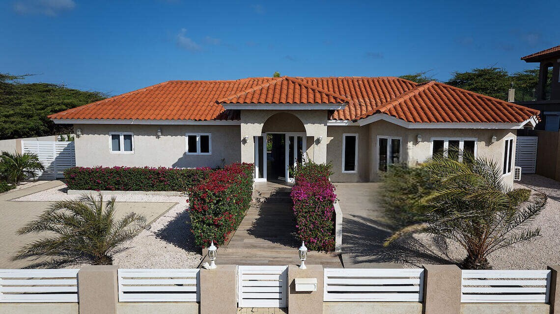 Esta villa privada está situada en la muy solicitada zona de Saliña Cerca en Noord, cerca de algunas de las playas más famosas de Aruba. Con 5 dormitorios y 4 baños en la casa principal, esta casa ofrece un amplio espacio para la relajación y la privacidad. 2 estudios separados cada uno con sus propios baños también están en el lugar. Con 2 patios cubiertos y un amplio cenador con vistas a la relajante piscina resplandeciente, hay espacios para una barbacoa o animadas reuniones y entretenimiento.