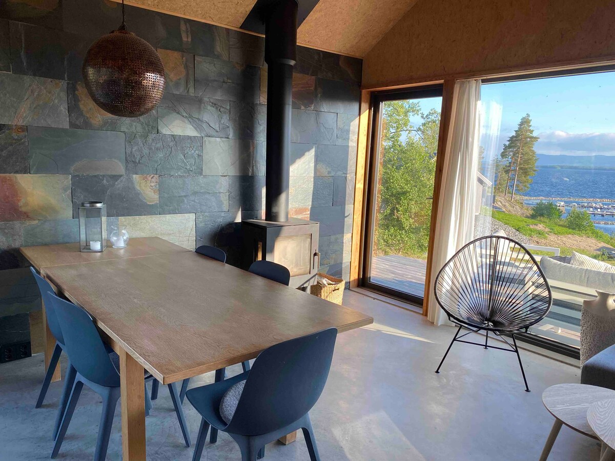 Gran cabaña más nueva con una hermosa vista de Storsjøen. La cabaña está ubicada en una pequeña zona de cabaña con aproximadamente 50 cabañas. A poca distancia del mar, donde puedes nadar en altas temperaturas de baño, varias actividades acuáticas y pesca en verano. El lugar tiene dos bonitas playas, una de las cuales es poco profunda y está bien adaptada para niños. En la zona también hay muchas rutas de senderismo agradables y excelentes pistas de esquí. En invierno, hay hielo en el agua, con la posibilidad de pesca en hielo, patinaje sobre hielo u otro. El área de la cabaña es apta para niños y está cerrada con una barrera solo para los residentes.