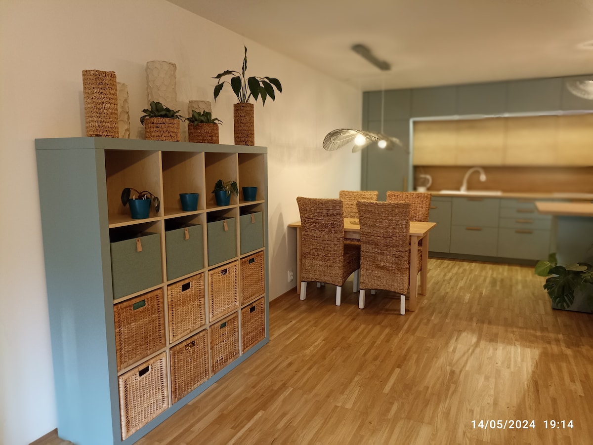 Leilighet med høy standard, romslig terrasse med sofa og spiseplass, takvifte på soverom, «waterfall» - dusj, vaskemaskin og tørketrommel. Fire minutter til bussholdeplass. Sengen er 140 cm, så skal man være 2 bør man være et par eller veldig så gode venner :) Mulig å leie parkering. Anbefaler å laste ned Aimo Park appen på forhånd, da den kan være vanskelig å laste ned via 5G nettet. Leiligheten ligger ikke «nær innsjø», men har foreløpig ikke greid å fjerne det fra AirBnB.