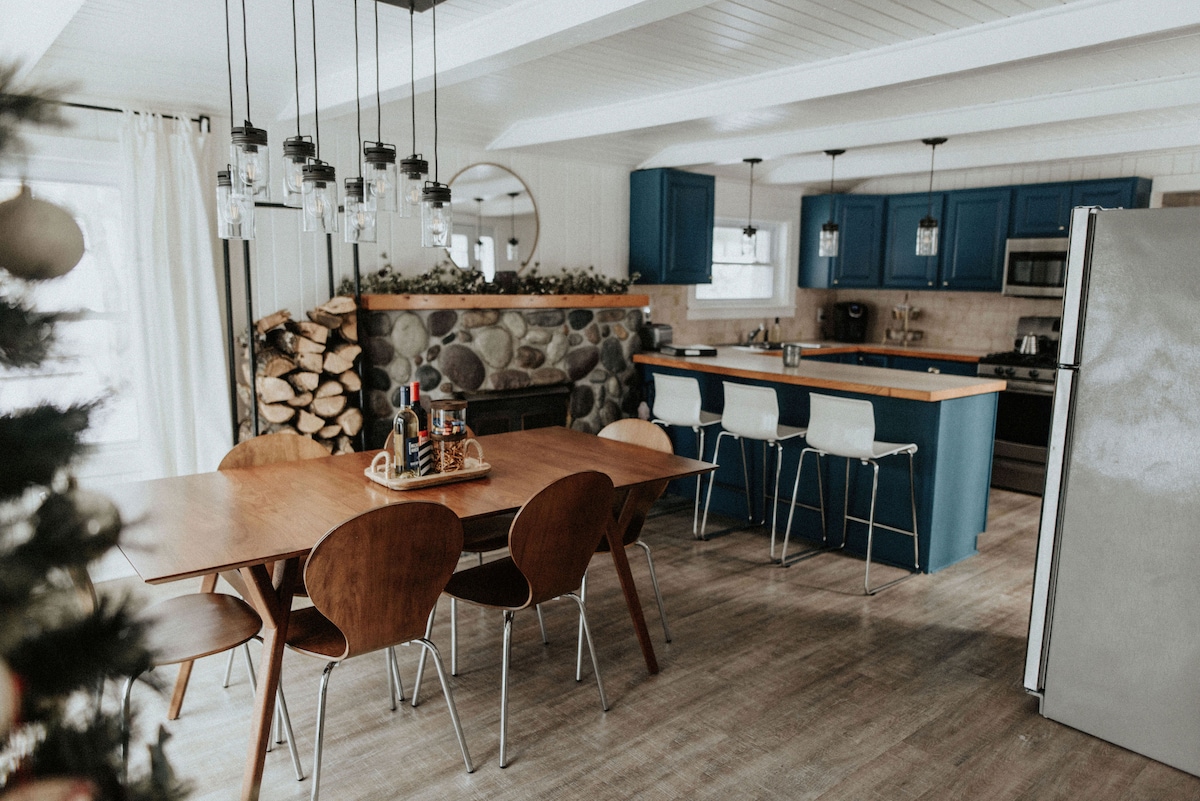 Escape into the wilderness with all the comforts of home and more. A luxurious, clean, private cabin getaway nestled in Manistee National Forest. Perfect for staying in and having drinks by the fireplace while watching the snow fall, roasting smores around the campfire while stargazing, or have a cookout on the patio. Make this your central hub for all your outdoor activities including fishing, skiing, snowmobiling, golf, hiking and mountain biking all less than 30 minutes away!