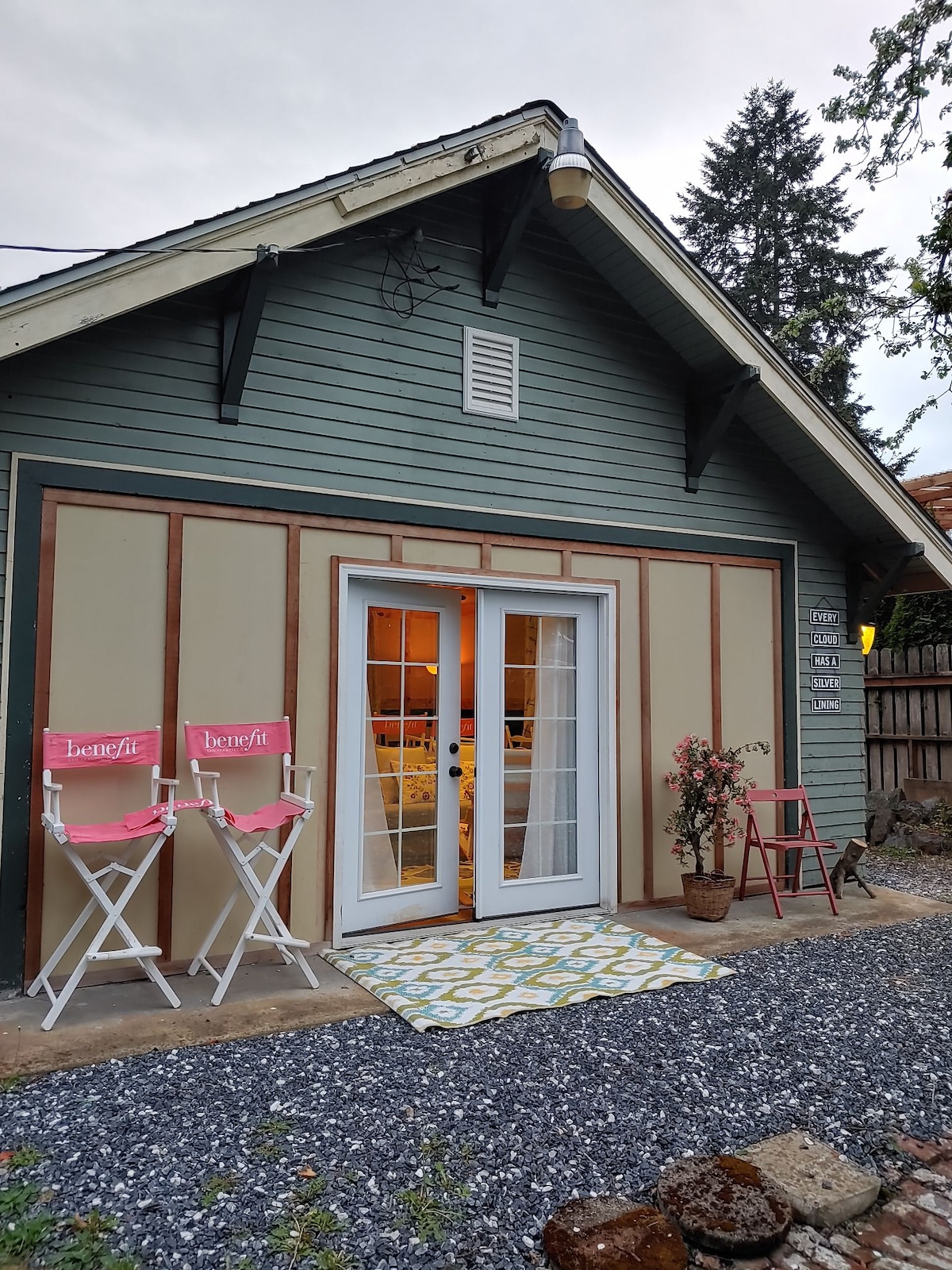 Estudio tranquilo e independiente de 400 pies cuadrados en un alojamiento moderno con baño completo, cocina, entrada privada y estacionamiento seguro con cargador EV. Cómodamente amueblado con 1 cama tamaño queen, 1 sofá cama completo, escritorio, centro multimedia, nevera con dispensador de agua helada, estufa, ducha sin bordes, lavadora y secadora. Grandes puertas corredizas de vidrio hacia un patio y árboles de cedro y madroño de 150' de altura. Acceso sin esfuerzo sin escaleras ni escalones. Suelos de hormigón pulido calentados con agua radiante caliente, aire acondicionado y mucha ventilación.