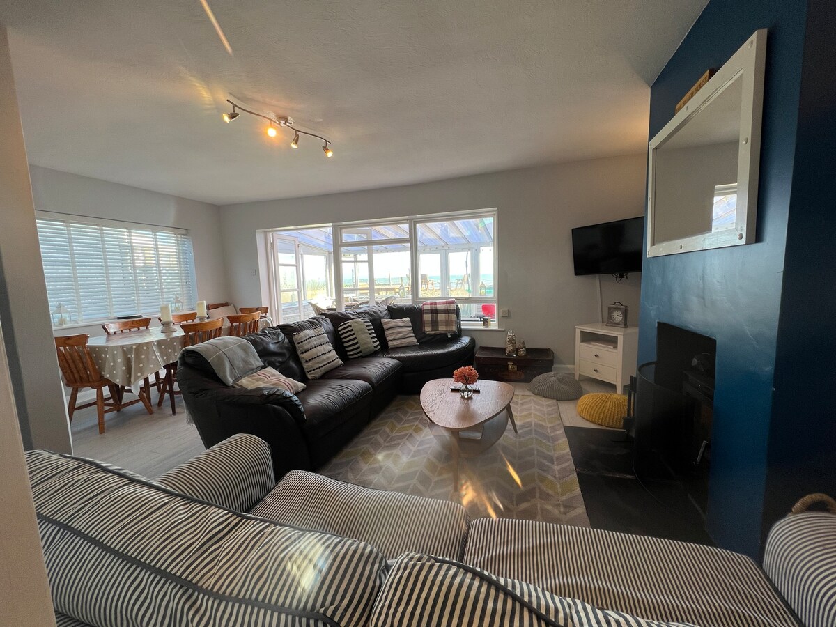 Small garden flat adjoined to beachfront house. Open plan lounge leading to fully equipped kitchen with breakfast bar & stools. Double bedroom with king size bed, shower room with basin & w/c. Outside is a sunny enclosed patio area with table chairs and BBQ. Allocated off road parking on site. Steps at the side of main house lead to a dog friendly private beach with seating for you to enjoy the fabulous sea views. Pevensey bay village is 1.2km away & has pubs, cafes & restaurants.