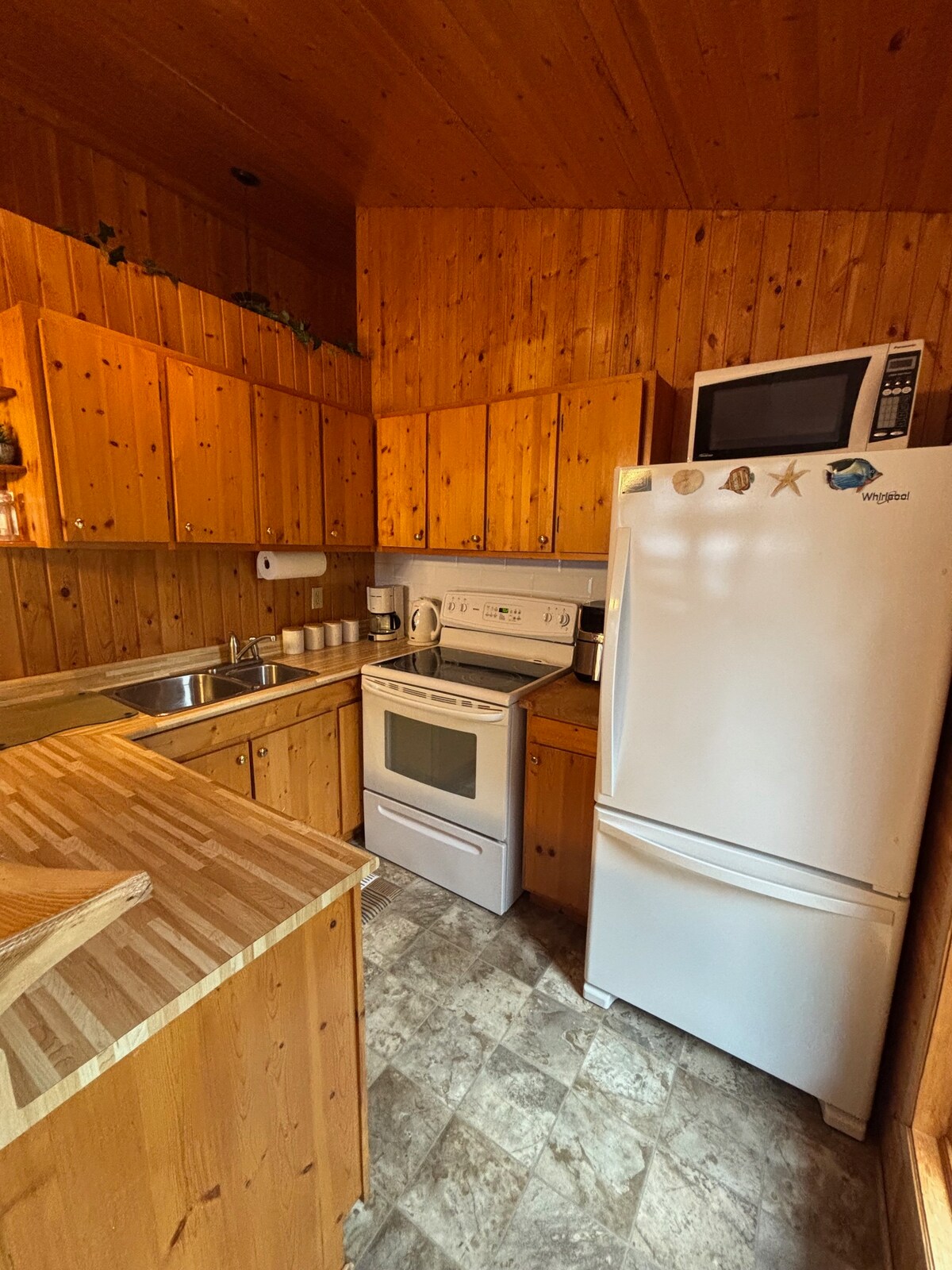 Ubicada en Bay Roberts, esta aislada casa de campo costera es una nueva construcción que ofrece un encanto rústico con un toque moderno junto con una hermosa vista al mar. Cuenta con 2 dormitorios, 1 baño, 2 zonas comunes y una cocina bien equipada. También cuenta con TV/Internet y un minisplit. En el exterior podrás disfrutar de la comodidad de un jacuzzi para seis personas, un estanque koi y la recolección de bayas en verano y otoño. El patio cubierto permite su uso durante toda la temporada. Ideal para familias y amigos que se reúnen.