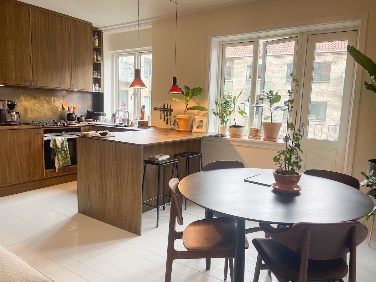 Acogedor y luminoso apartamento de 2 habitaciones en el corazón de Nørrebro. Recientemente renovado, elegantemente decorado y ubicado en una calle tranquila a pocos pasos de cafés, restaurantes, tiendas vintage y transporte público. Perfecto para parejas o viajeros solitarios que desean una base cómoda en uno de los vecindarios más vibrantes de Copenhague. Disfruta de acceso completo a todo el departamento y de un registro fácil y automático a través de la caja de llaves.