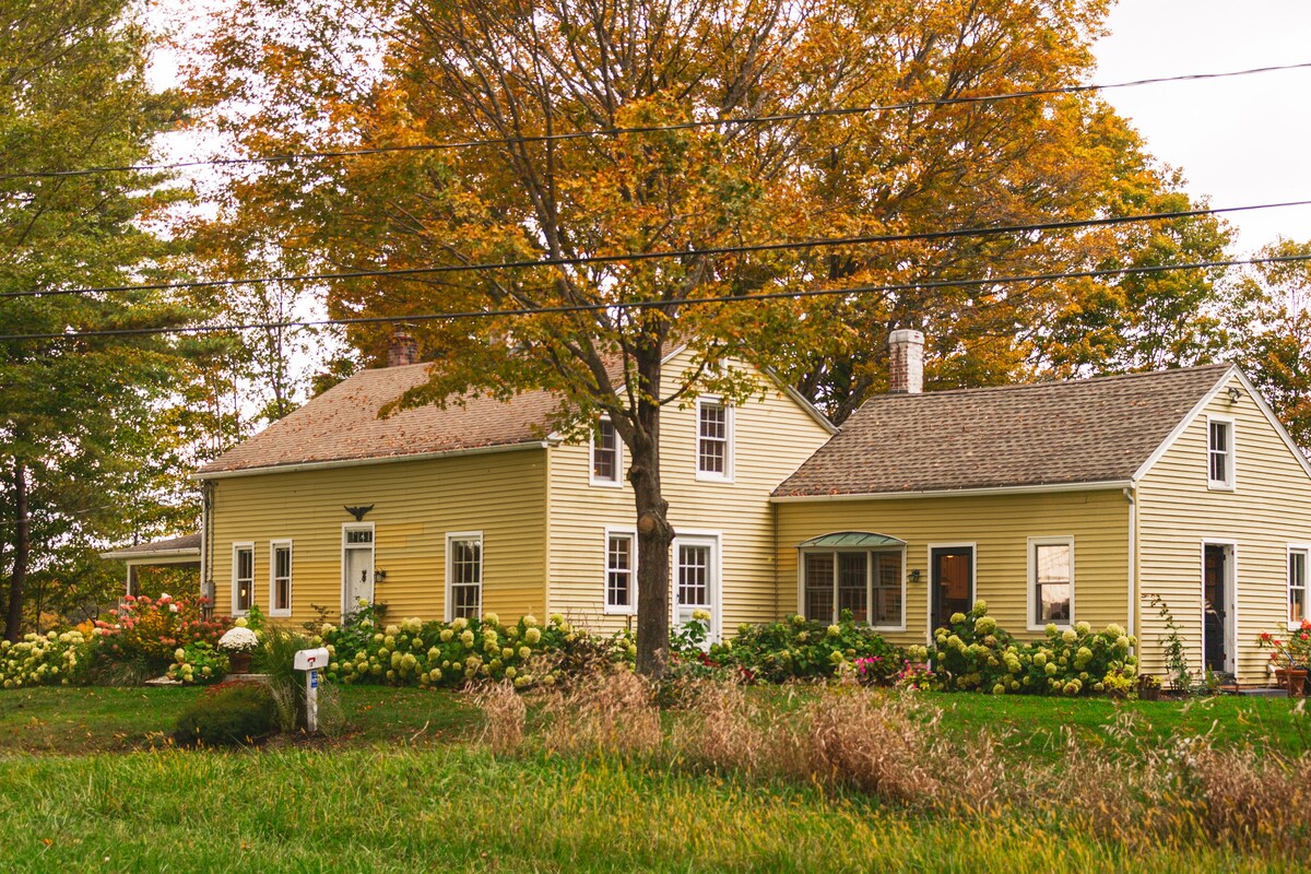 Escapada rústica en las hermosas colinas de Litchfield, en el noroeste de Connecticut, con un estanque de 2 acres y acceso a 9 millas de rutas de senderismo únicas en más de 450 acres boscosos. Acogedora granja de 1700 con capacidad para 4 adultos en 2 dormitorios, con una habitación adicional para niños que tiene un futón doble plegable y un loft con un colchón de aire doble, perfecto para los sacos de dormir de los niños. Hay un sofá cama en la sala de estar. ¡Se admiten perros! La casa está al lado de Norbrook Farm Brewery, a la que se puede ir caminando.