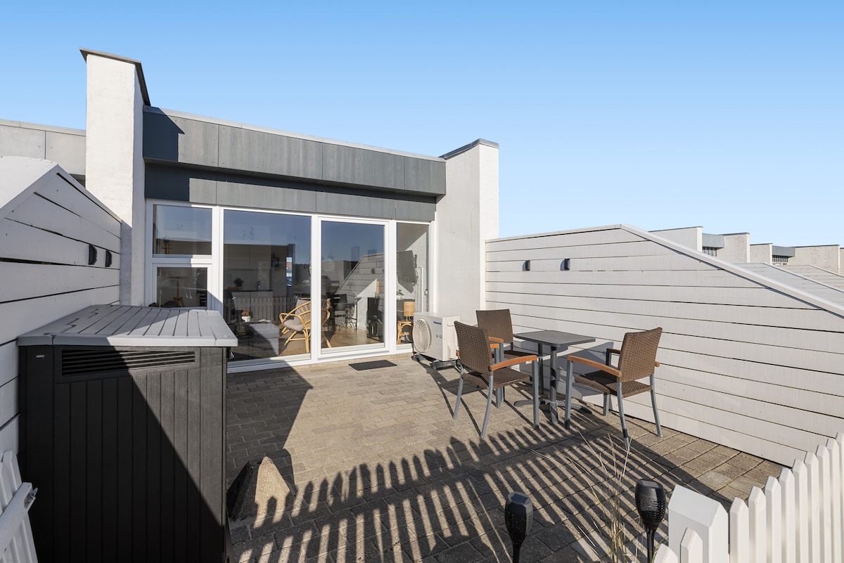 Te encantará esta casa única y romántica con vistas a una de las mejores playas de Dinamarca y cerca de Rønbjerg. La casa está recién construida en estilo clásico danés que se adapta a la zona con muchas pequeñas casas danesas de verano que están cerca unas de otras y se saludan. El corazón de la casa es una sala de estar un comedor de cocina más grande donde las familias pueden cocinar cualquier cosa, desde comida, juegos creativos o disfrutar de una gran película juntos. La casa tiene 2 dormitorios, uno de los cuales tiene un loft, por lo que hay espacio para la gran familia.