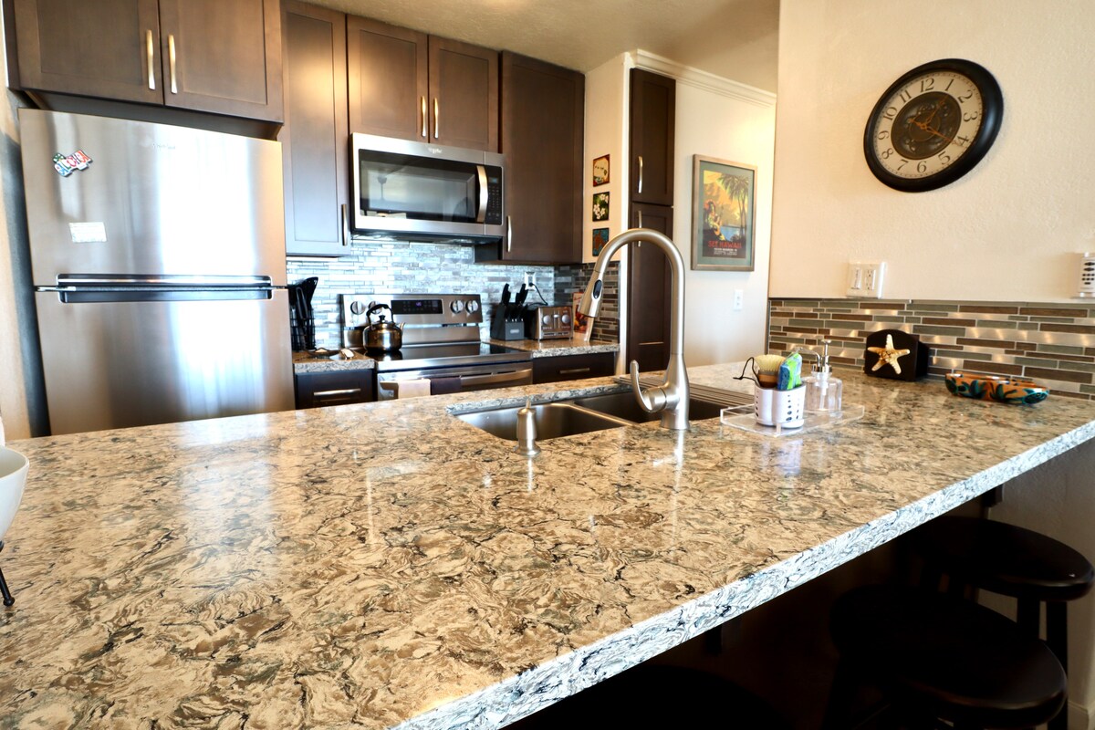 El Kona Reef se renovará en 2026. Echa un vistazo a nuestras tarifas especiales de construcción. Horario de Reno de 8:00 a. m. a 5:00 p. m. de lunes a sábado mientras estás en las playas, volcán, etc. ¡Te encantará este condominio! Frente al mar absoluto. A 5 minutos a pie del centro de la ciudad. ¡Estacionamiento gratuito! ¡Completamente remodelado! Fresco, limpio, elegante y cómodo. NUEVO aire acondicionado completo, cocina abastecida, equipo de playa y golf. ¡ATENCIÓN GOLFISTAS! ¡2 juegos de palos de golf Callaway! Echa un vistazo a nuestros otros 2 apartamentos Kona Reef A35 y B31 TA-109-936-6880-01 STVR-19-352037