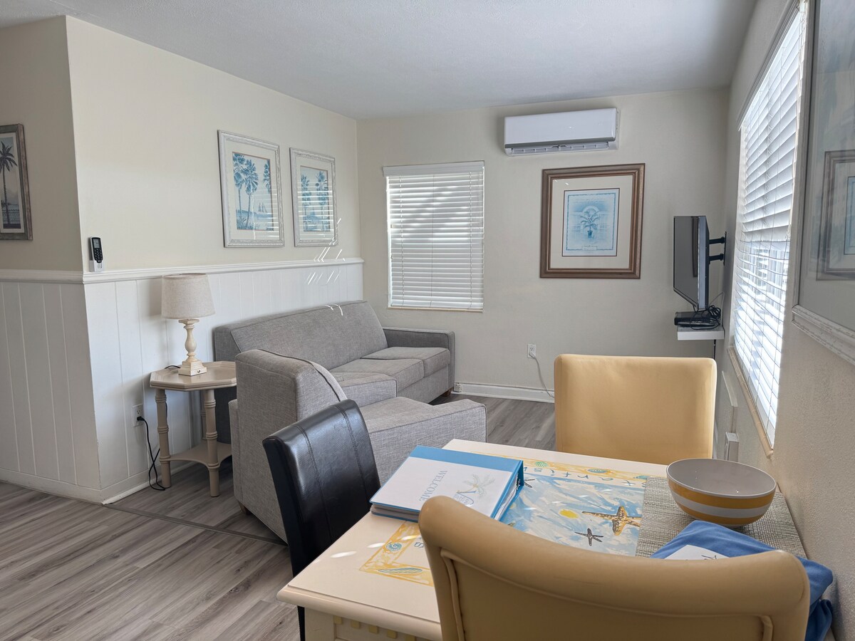 Tu habitación de motel es fresca y limpia, inspirada en los colores tranquilos de nuestra playa. Es 1 de 4 unidades que comparten un pasillo común en la segunda planta sobre la oficina (sin ascensor) que no dan a la playa. Un paseo por las escaleras y alrededor del edificio encontrará los pies en la arena y una hermosa vista del Golfo. Nuestro motel frente a la playa que fue construido en 1959 y ha estado en nuestra familia desde 1960. Los huéspedes regresan año tras año para disfrutar de nuestra ubicación.