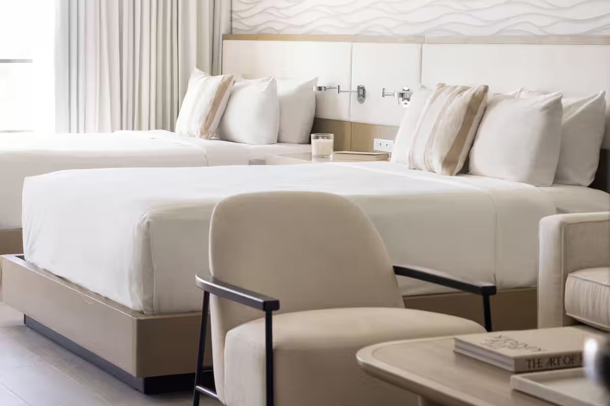 Nuestras suites han sido seleccionadas para combinar elementos modernos del estilo costero de Florida combinados con la comodidad del hogar. Cada suite incluye 2 dormitorios, una cocina totalmente equipada, una sala de estar separada y un balcón privado de gran tamaño que ofrece impresionantes vistas al agua.