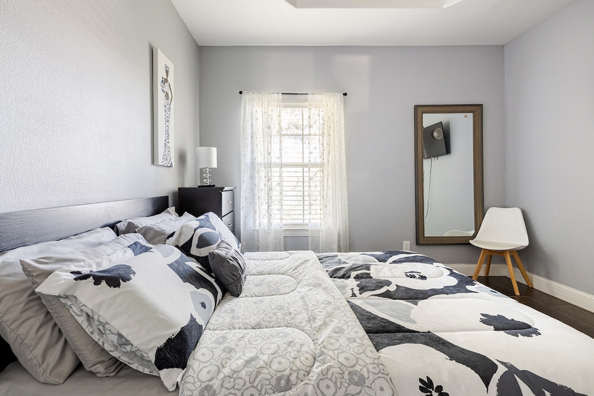 Gran villa de lujo con más de 2500 pies cuadrados, 4 dormitorios, 2,5 baños, 3 salas de estar, piscina climatizada y spa a petición, ubicada en una hermosa y tranquila comunidad. El mejor patio trasero con todo lo necesario para divertirse al aire libre. Parques y senderos para caminar cercanos. 7 televisores inteligentes Roku, televisión por cable, muchos juegos de mesa. Fácil acceso al centro de Dallas, al aeropuerto DFW, al circuito de velocidad de Texas, al lago Lewisville, al lago Grapevine, al estadio ATT de los Dallas Cowboys y al estadio The Sar. Consulta las instrucciones de la piscina a continuación.