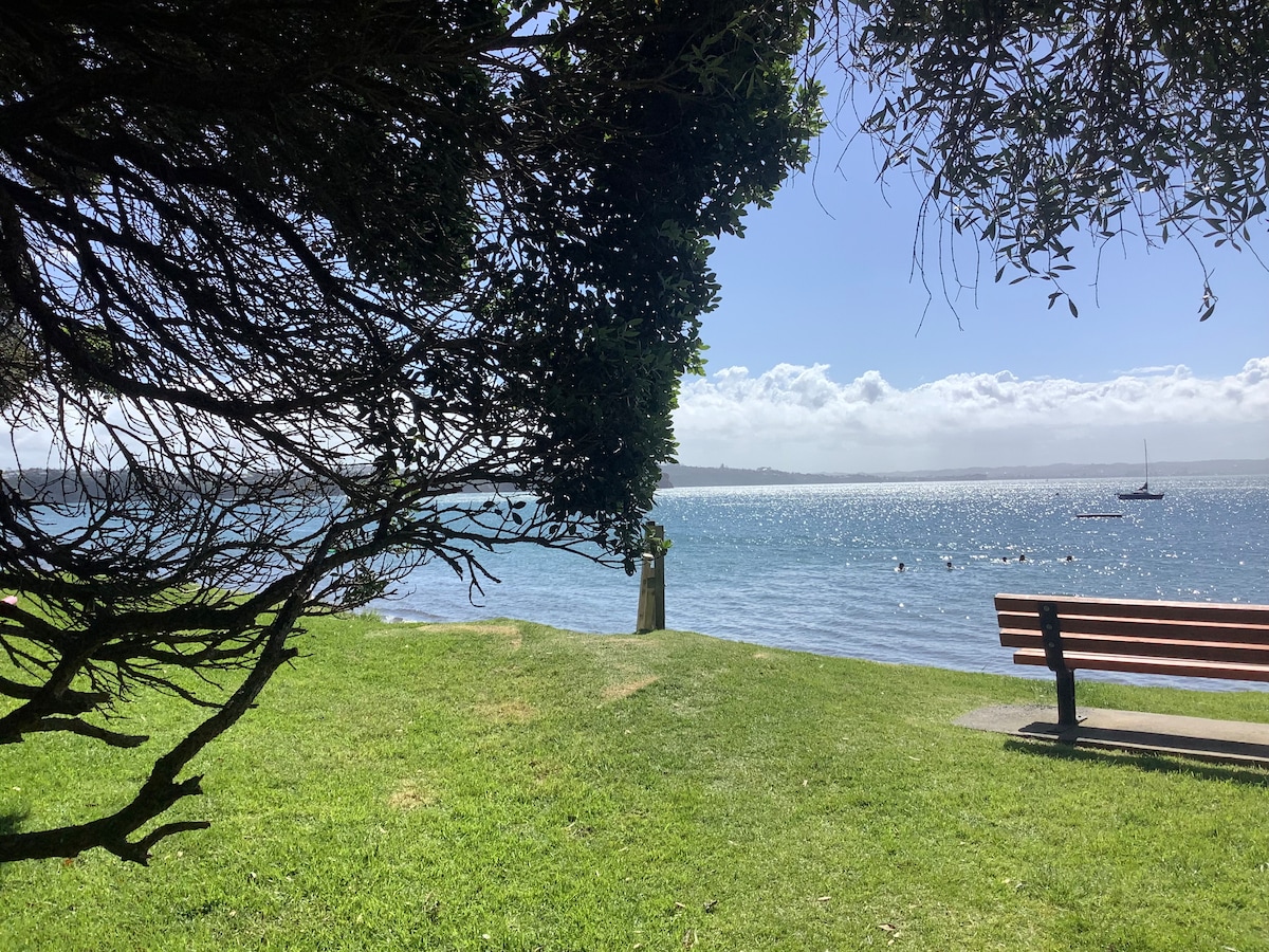 Esta moderna suite de diseño arquitectónico con su propia entrada privada se encuentra entre tranquilos alrededores de arbustos en Remuera y tiene vistas a la ensenada de la cuenca de Orakei. Tiene muebles cómodos, una cocina totalmente equipada, calefacción por suelo radiante, mantas eléctricas debajo de las sábanas y una amplia zona al aire libre cubierta de hierba con un camino que conduce a la orilla del agua. Está cerca de autobús y tren, cafeterías locales, un centro comercial y un sendero que rodea la cuenca de Orakei.