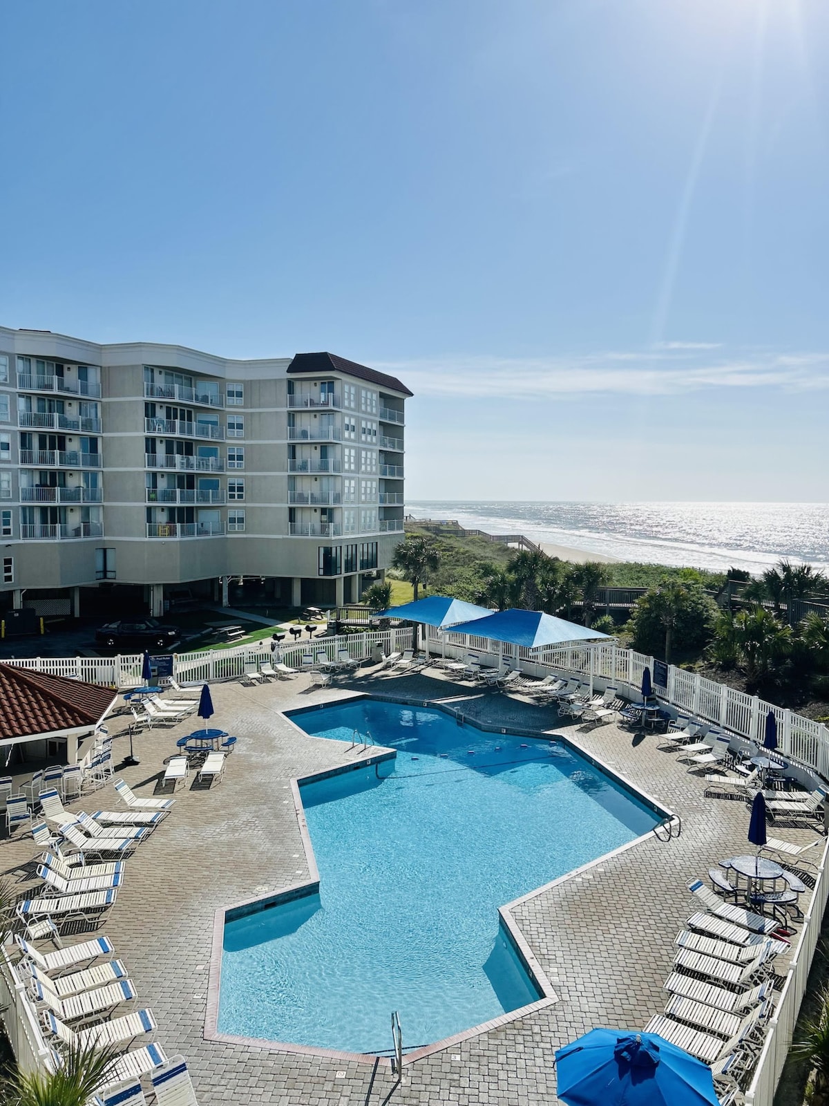 “The Surf Shack” cuenta con uno de los paseos más cortos a la playa de cualquier condominio e incluye todos los servicios que puedas desear: • Escalones a la playa • Piscina frente a la playa y piscina cubierta climatizada • Parque infantil de piratas y cancha de pickleball. • Ropa de cama, almohadas, mantas • Deliciosa comida en el lugar (restaurante de mariscos en la azotea con vistas a la playa, Pirate Bar & Grill, heladería y cafetería). • Gimnasio y sauna. • Lugar de reunión al aire libre con Putt Putt, Bocce Ball • Sala de juegos con mesa de billar, hockey de aire, futbolín. • Cafetería