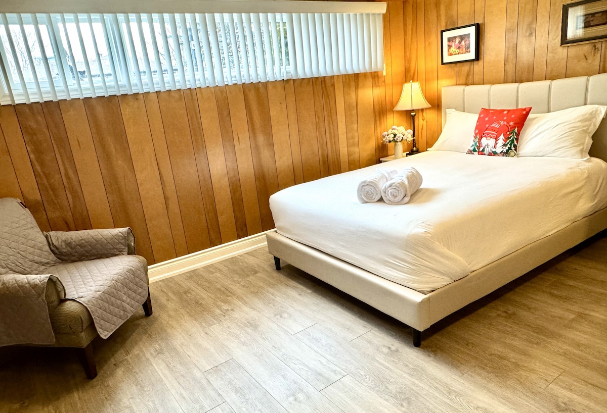 ¡Te damos la bienvenida a nuestra luminosa y espaciosa suite en el sótano de Thornhill! Disfruta de un patio trasero tranquilo que se encuentra justo al lado del Bayview Golf Club, perfecto para el café de la mañana o para relajarte después de un largo día. Los huéspedes tienen acceso completo al gimnasio y al cine en casa durante su estancia. La suite cuenta con: • Un acogedor dormitorio con una cama tamaño queen. • Un cómodo sofá cama extraíble en la sala de estar. • Entrada privada y mucha luz natural. ¡Estamos encantados de hospedarte y esperamos que disfrutes de la estadía!